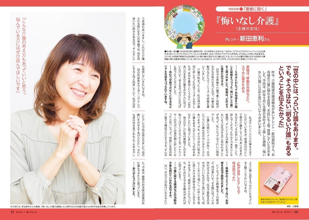 ~表紙は元おニャン子クラブ・メンバーでタレントの新田恵利さん、著書『悔いなし介護』への思いを語る~