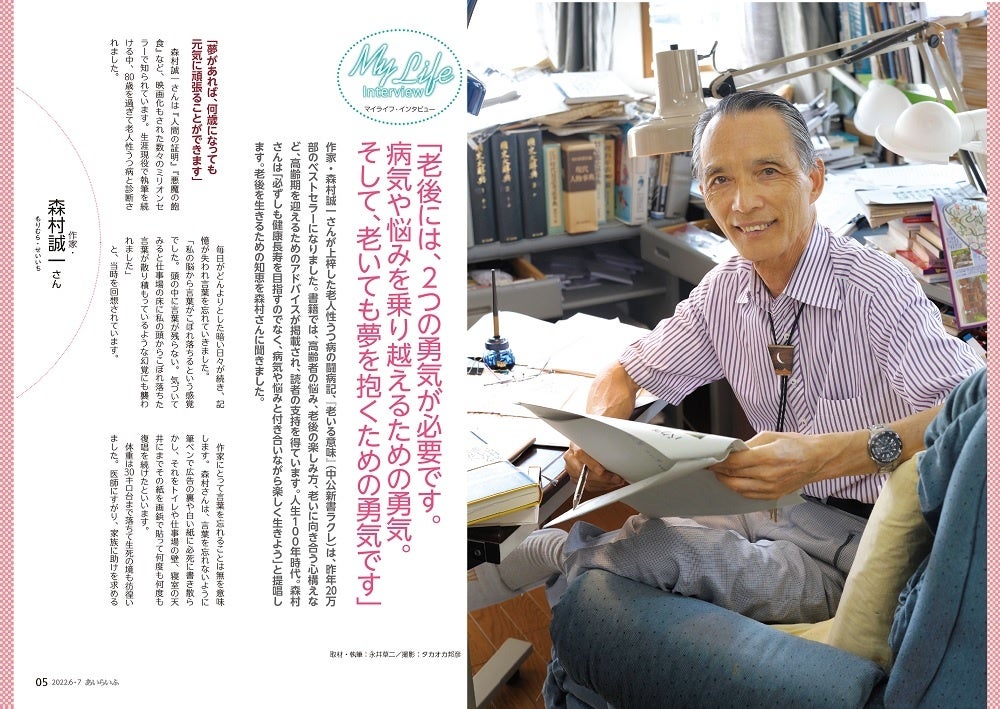 介護情報誌『あいらいふ』6-7月号、巻頭インタビューは、昨年老人性うつ病の闘病記、『老いる意味』を上梓した、作家の森村誠一さん