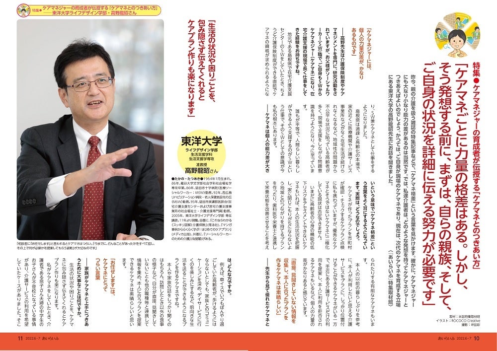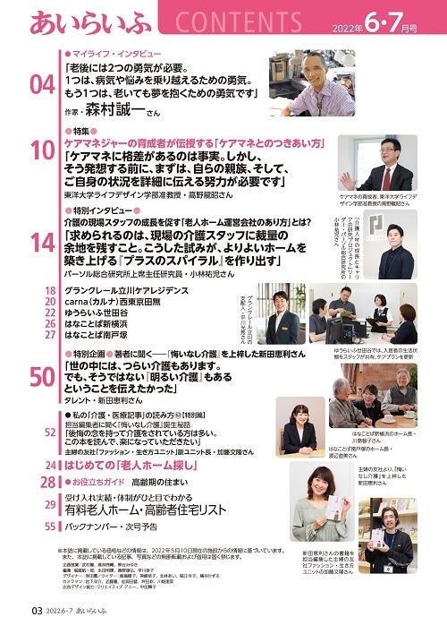 株式会社あいらいふ(本社:東京都千代田区 代表者:藤田敦史)は、介護情報誌『あいらいふ』(2022年6-7月号)を、5月26日(木)に発刊いたします。