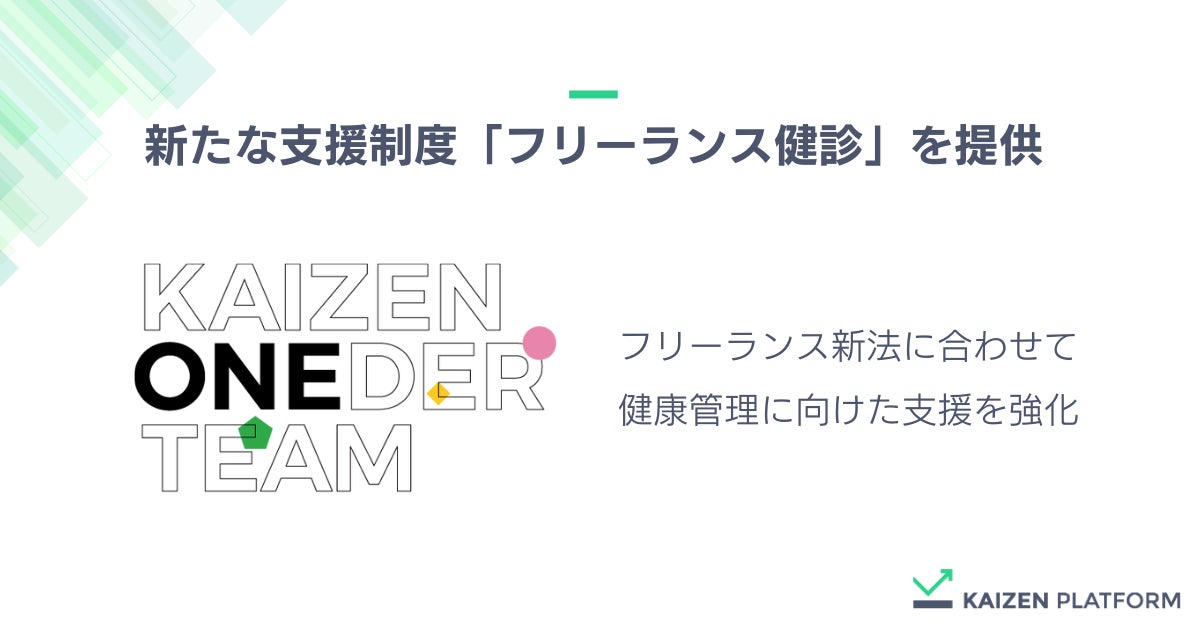 Kaizen Platform、フリーランス向け支援制度として「フリーランス健診」の提供を開始