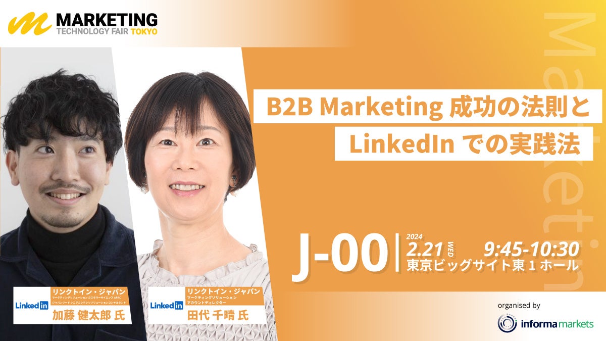 インフォーマ マーケッツ ジャパン株式会社(東京都千代田区、代表取締役社長:クリストファー・イブ)は、2024年2月21日(水)・22日(木)に、マーケティング業界向けビジネスイベント「マーケティング・テクノロジーフェア 東京 2024」を東京ビッグサイトにて開催いたします。参加企業は約200社を予定しており、2日間で約120講演開催するセミナーには業界のリーディングカンパニーが多数登壇します。