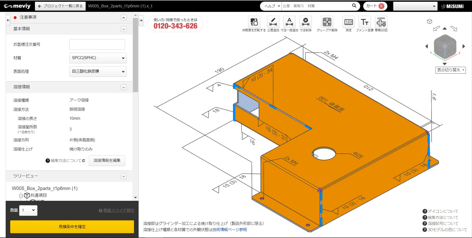▼ 板金溶接加工サービスイメージ (meviy画面)