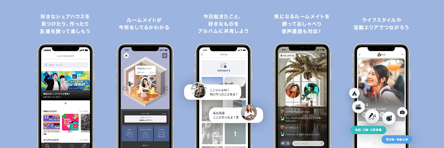 さらにOneRoofでリスナー同士が共同生活を送る番組公式シェアハウスが開設されるほか、配信日には番組とアプリが連動し、番組内で登場したトークテーマと同じ内容で盛り上がることができます。