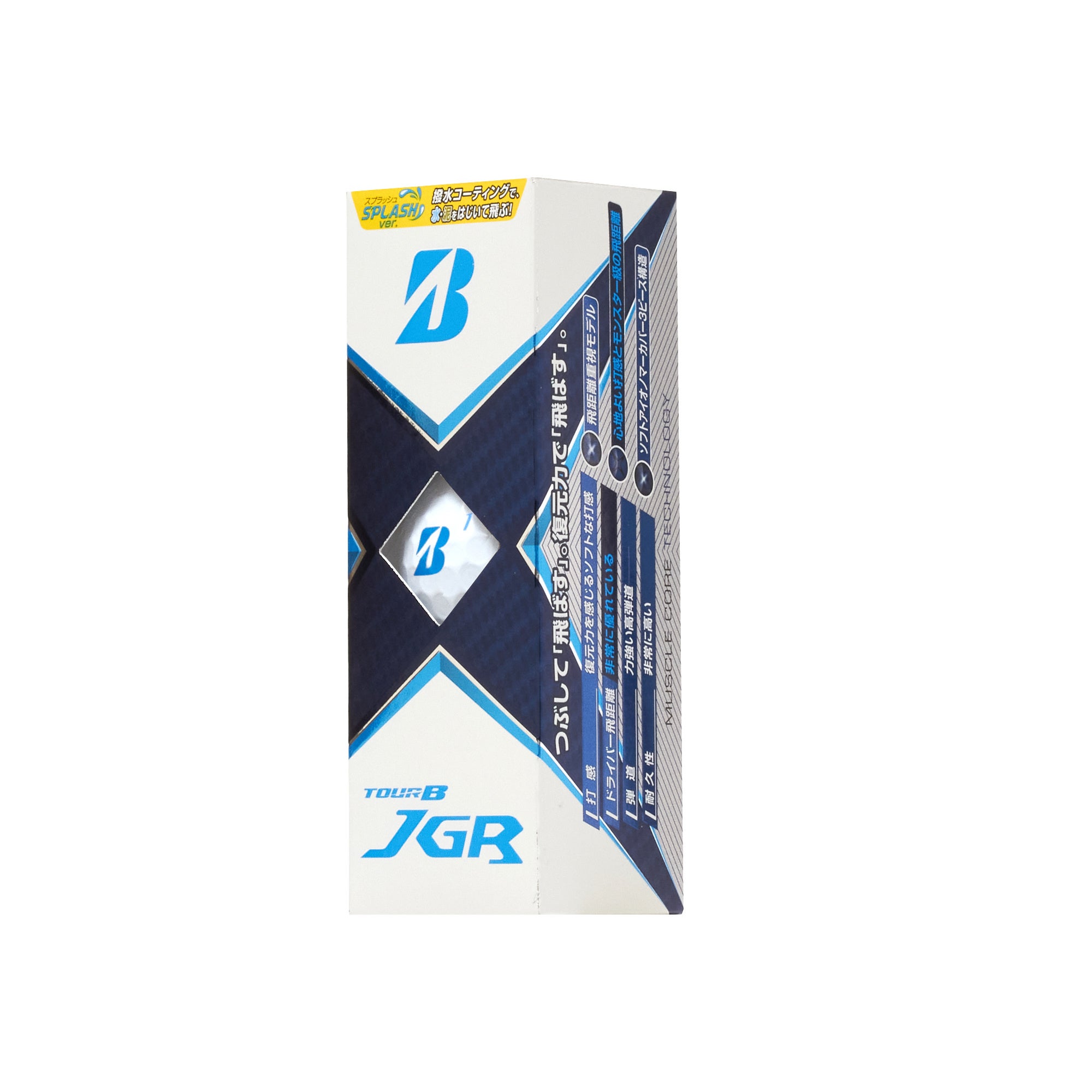 当商品は、『TOUR B JGR』と同じ打感やアプローチ性能を持ちながら、ボール表面に撥水コーティングを施すことにより、水や泥を弾き(SPLASH)、ボールが汚れにくいのが特長です。