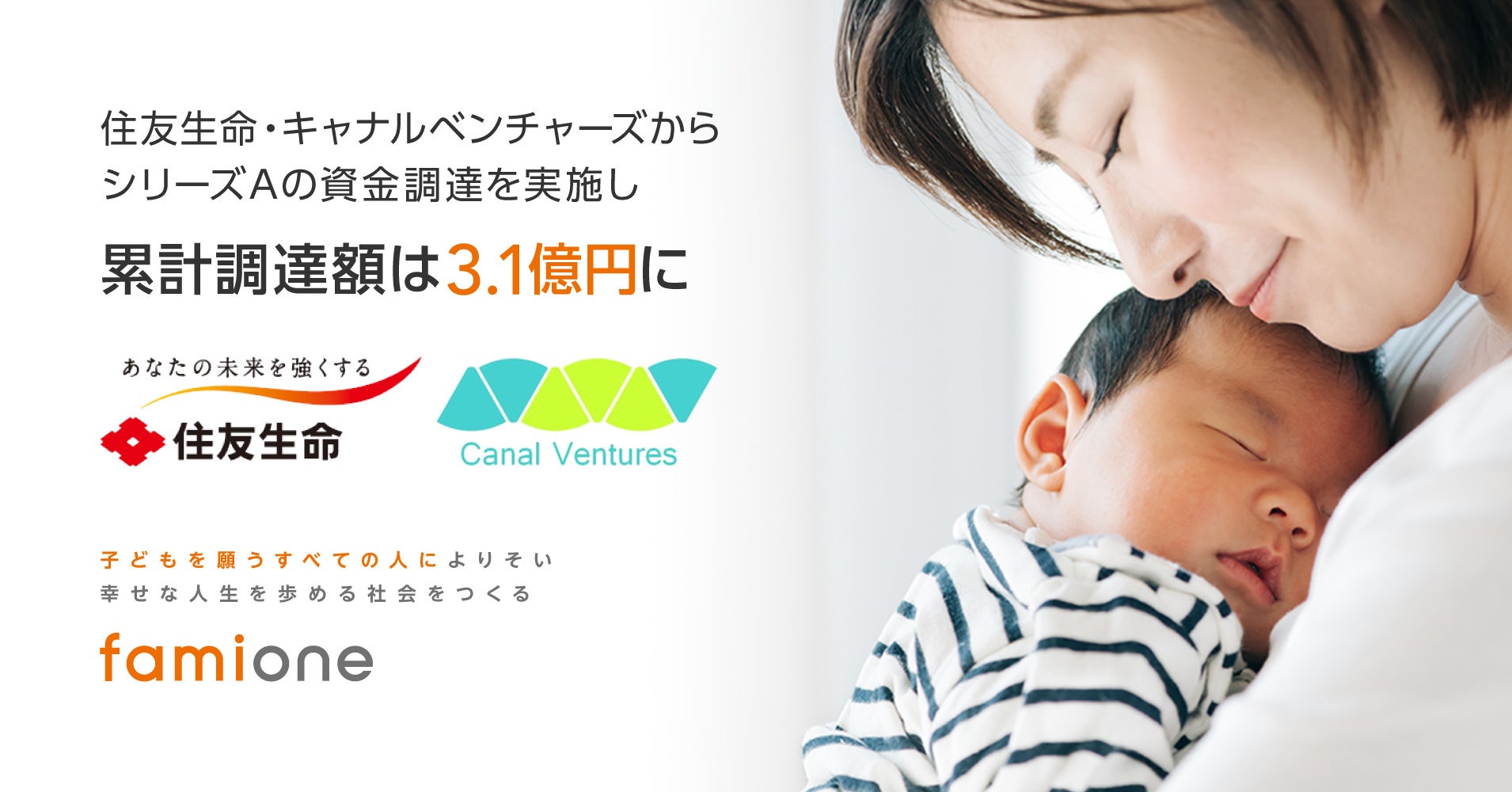 【妊活・不妊治療サポート ファミワン】住友生命、キャナルベンチャーズからシリーズAの資金調達を実施し、累計資金調達額が3.1億円に