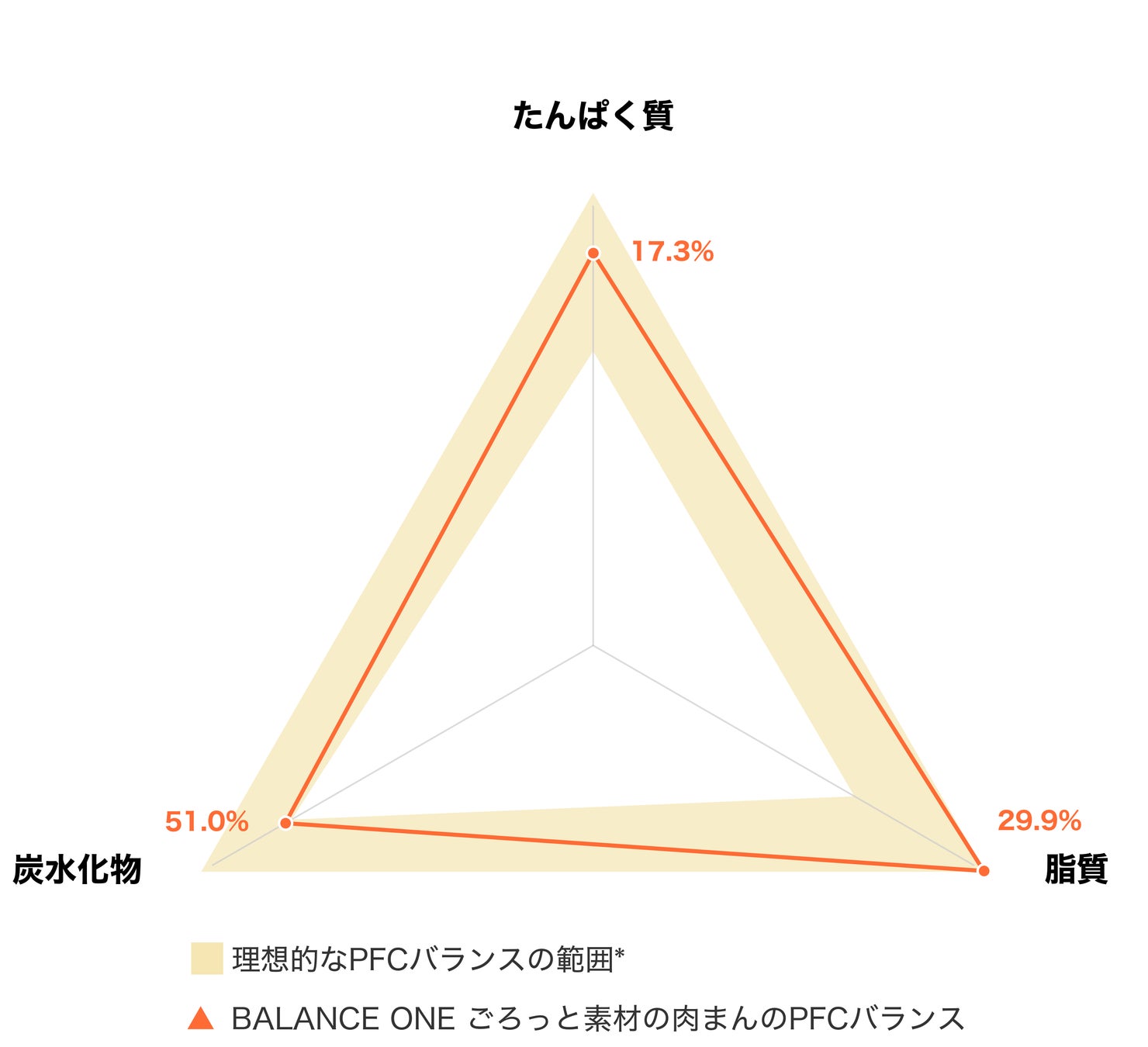 BALANCE ONEは、厚生労働省が定めた「日本人の食事摂取基準(2025年版)」に基づき、たんぱく質・脂質・炭水化物のエネルギー比率(PFCバランス)を理想的なバランスで設計。