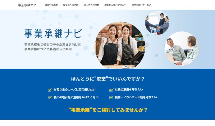 後継者問題の解決を支援する 「事業承継ナビ」サービス開始