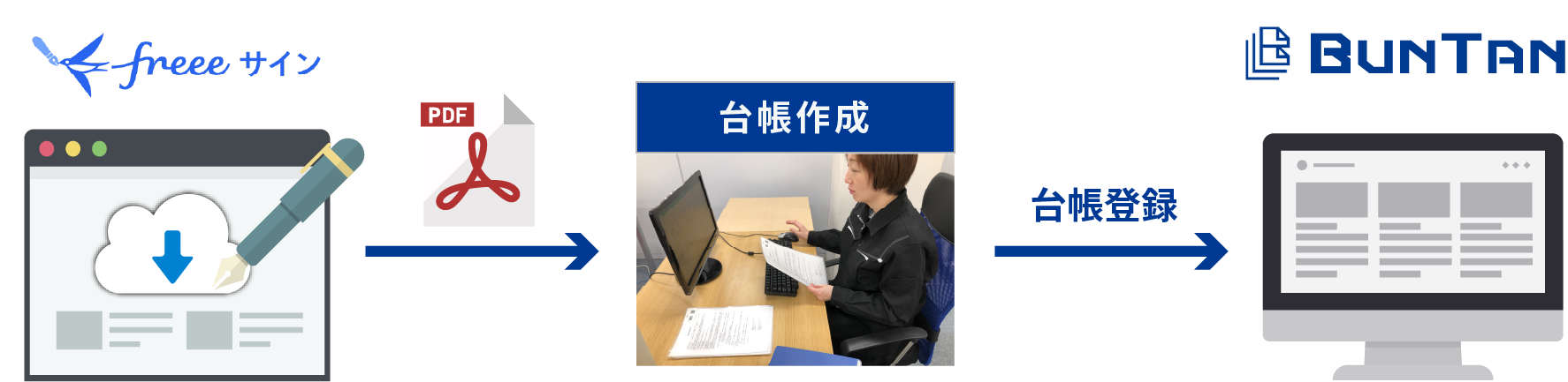 これにより導入企業は、「freeeサイン」で契約締結が完了した電子文書と契約書情報を「BUNTAN」上にシームレスに同期し、紙の契約書もPDF化して「BUNTAN」上で管理することで、紙の契約と電子契約の一元管理が可能になります。