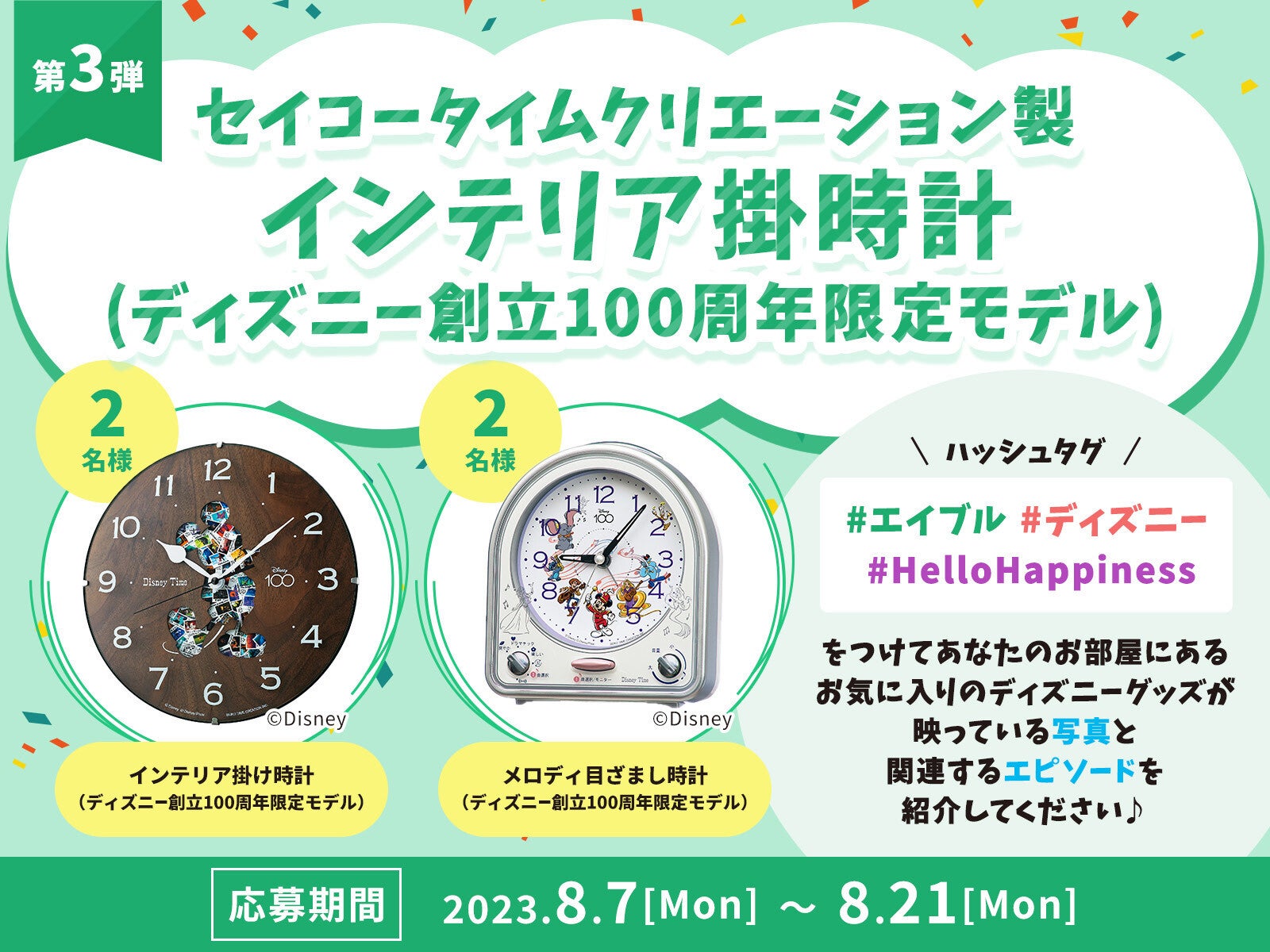 エイブル公式Twitterアカウントでは抽選でディズニーデザイングッズをプレゼントするキャンペーンを実施中!2023年8月7日(月)~8月21日(月)の期間中、ハッシュタグ「#エイブル」「#ディズニー」「#HelloHappiness」をつけて、あなたのお部屋にあるお気に入りのディズニーグッズが映っている写真と、関連するエピソードをツイートして紹介してください。