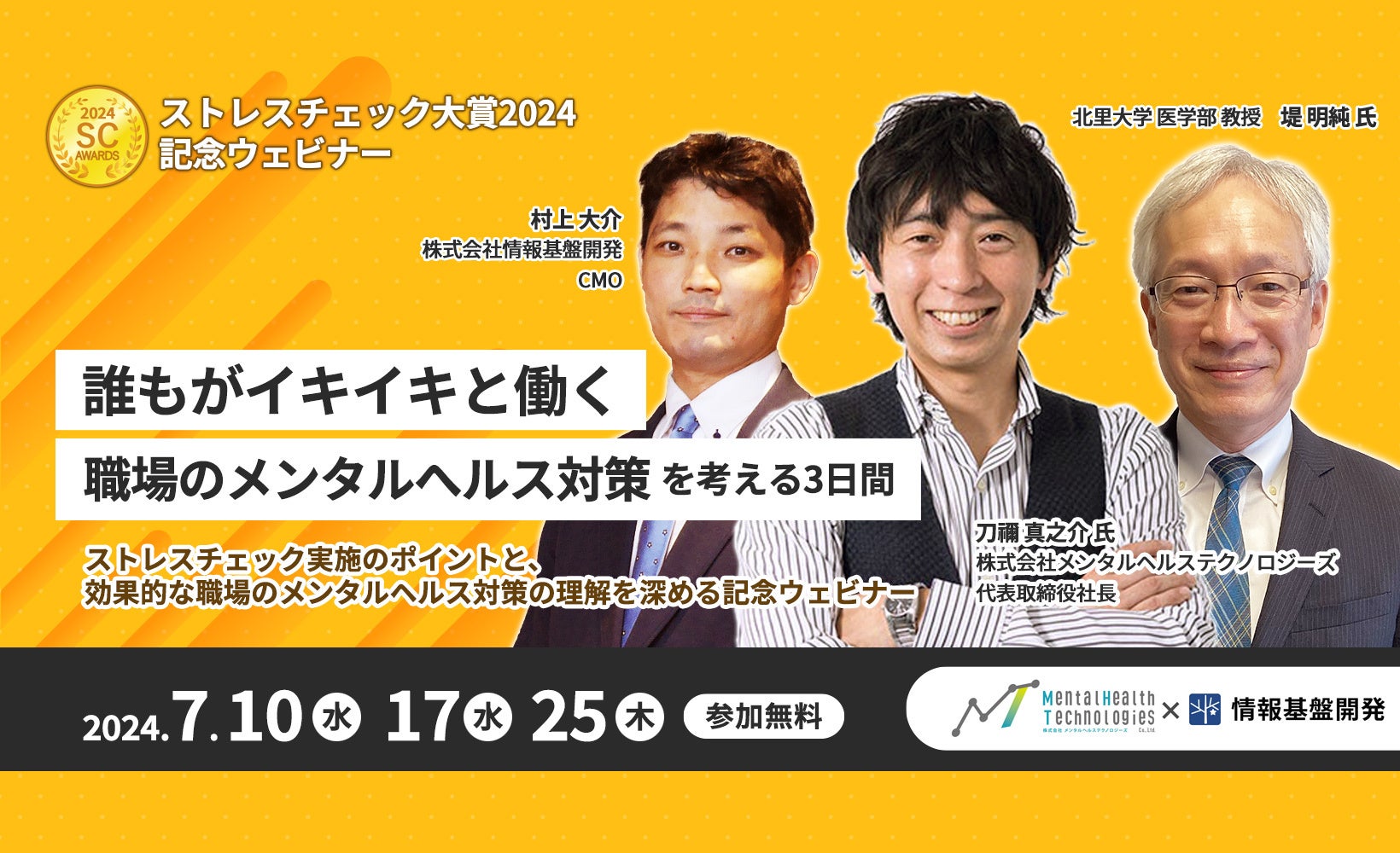【7月10日・17日・25日の3週連続配信】「ストレスチェック大賞2024」記念ウェビナー開催!"誰もがイキイキと働く職場のメンタルヘルス"を考える3日間