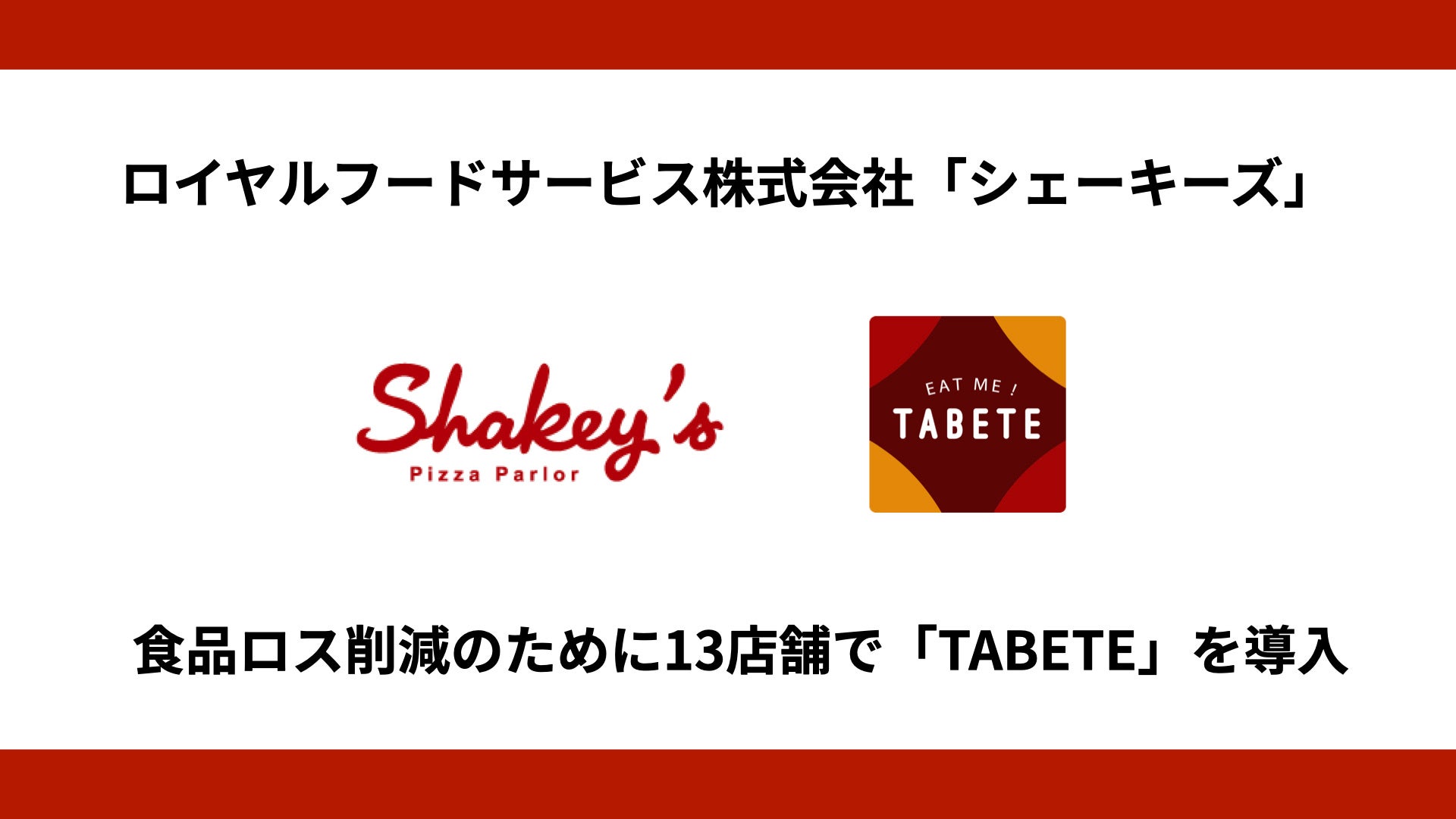 株式会社コークッキング(以下コークッキング)の展開する食品ロス削減のためのフードシェアリングサービス「TABETE(タベテ)」が、ロイヤルフードサービス株式会社(以下ロイヤルフードサービス)が運営する「シェーキーズ」13店舗に導入されました。