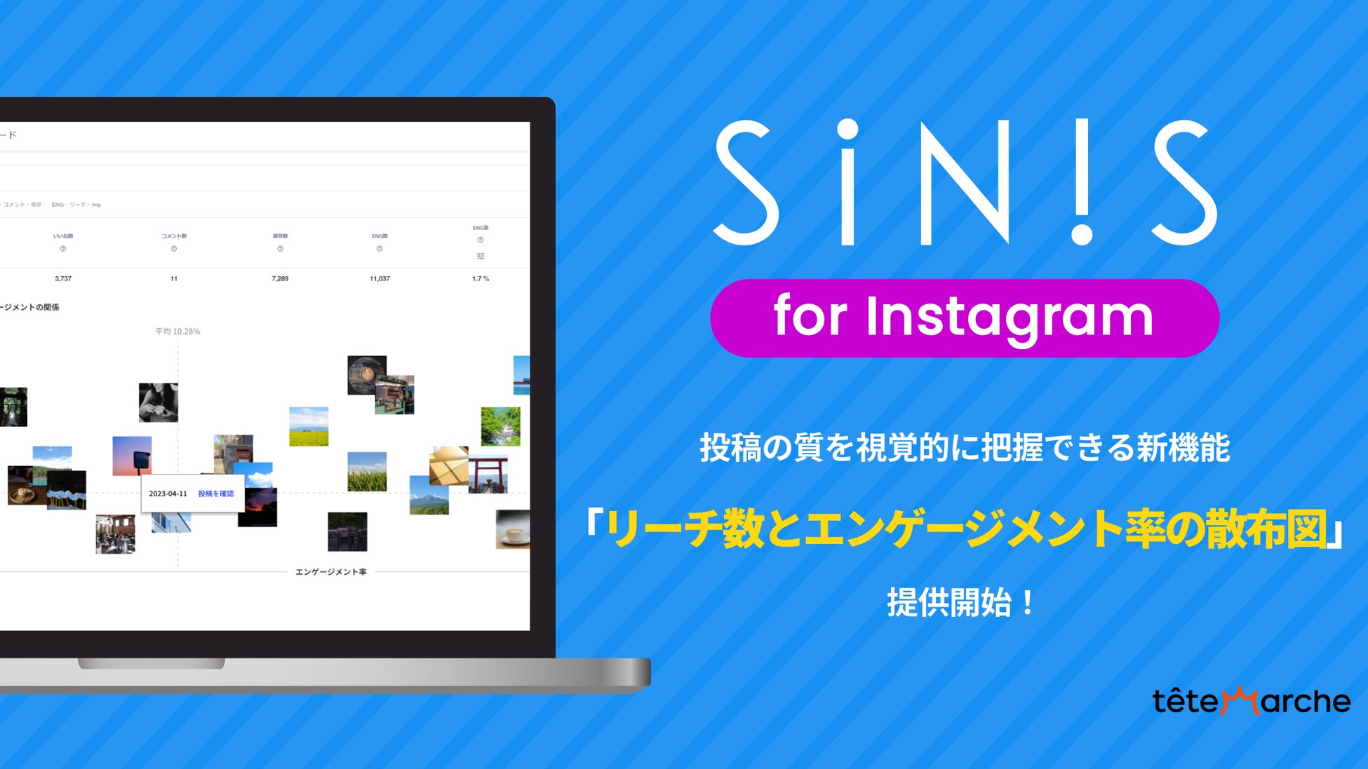 Instagram分析ツール「SINIS for Instagram」リーチ数とエンゲージメント率の散布図を提供開始