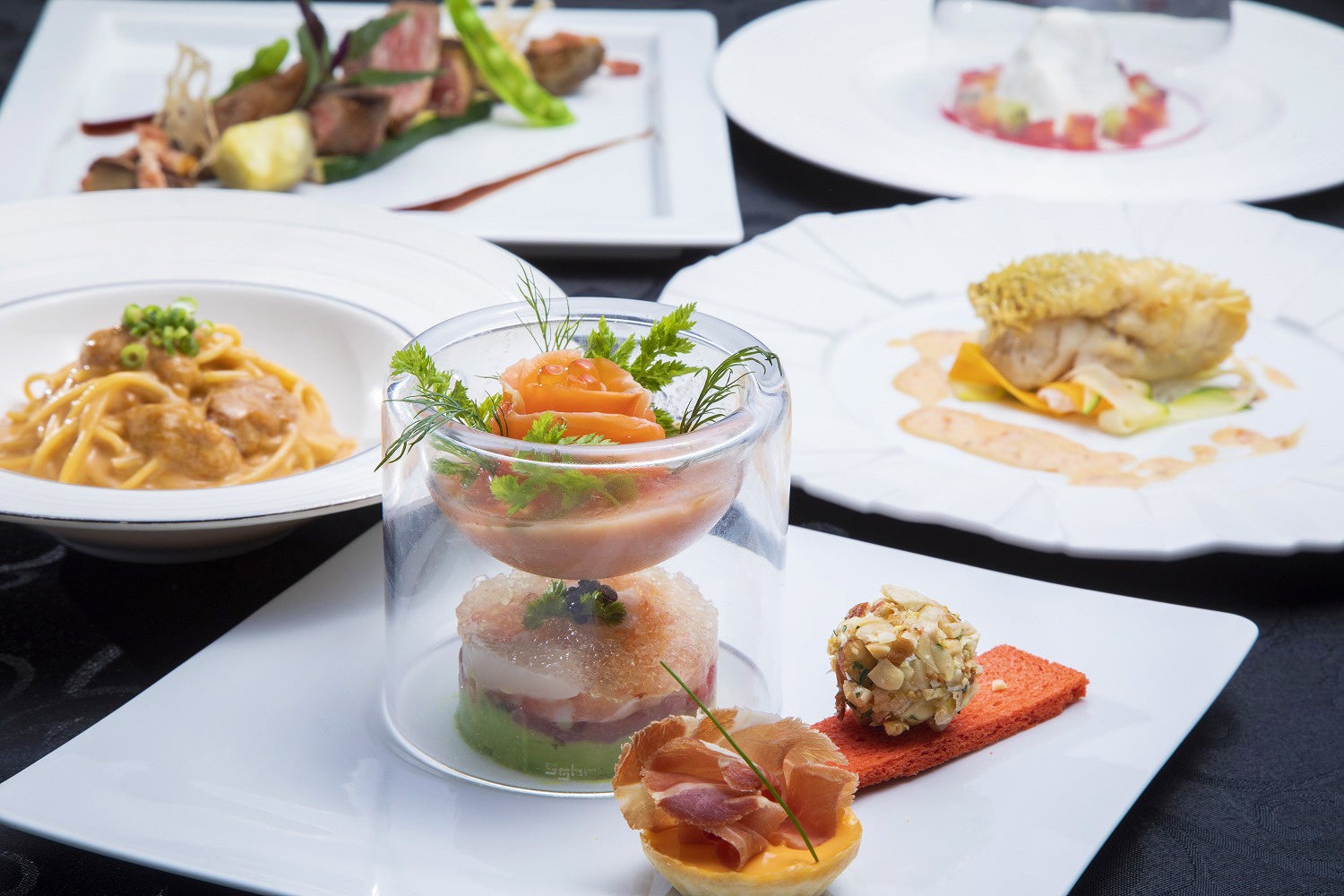 宮崎牛やみやざき地頭鶏などの宮崎食材はもちろん、秋の味覚を使った、見た目の華やさもさることながら多彩なアレンジで仕上げました。