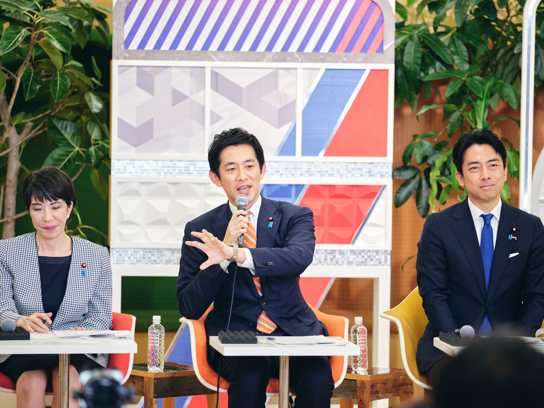 今回の総裁選に立候補した高市早苗氏、小林鷹之氏、小泉進次郎氏、上川陽子氏、加藤勝信氏、河野太郎氏、石破茂氏、茂木敏充氏が登壇し、若年層から要望の多かった「若者の給料・所得の上げ方」や「社会保障費にかかる現役負担の軽減策」などをテーマにクロストークで意見を交えました。林芳正氏は災害対応のため討論会を欠席。討論会冒頭、VTRでのご出演となりました。