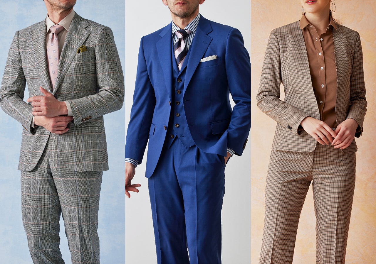 - オーダースーツの組み合わせ例 春モノ新作×オールシーズンモノ新作×ビジネススーツ