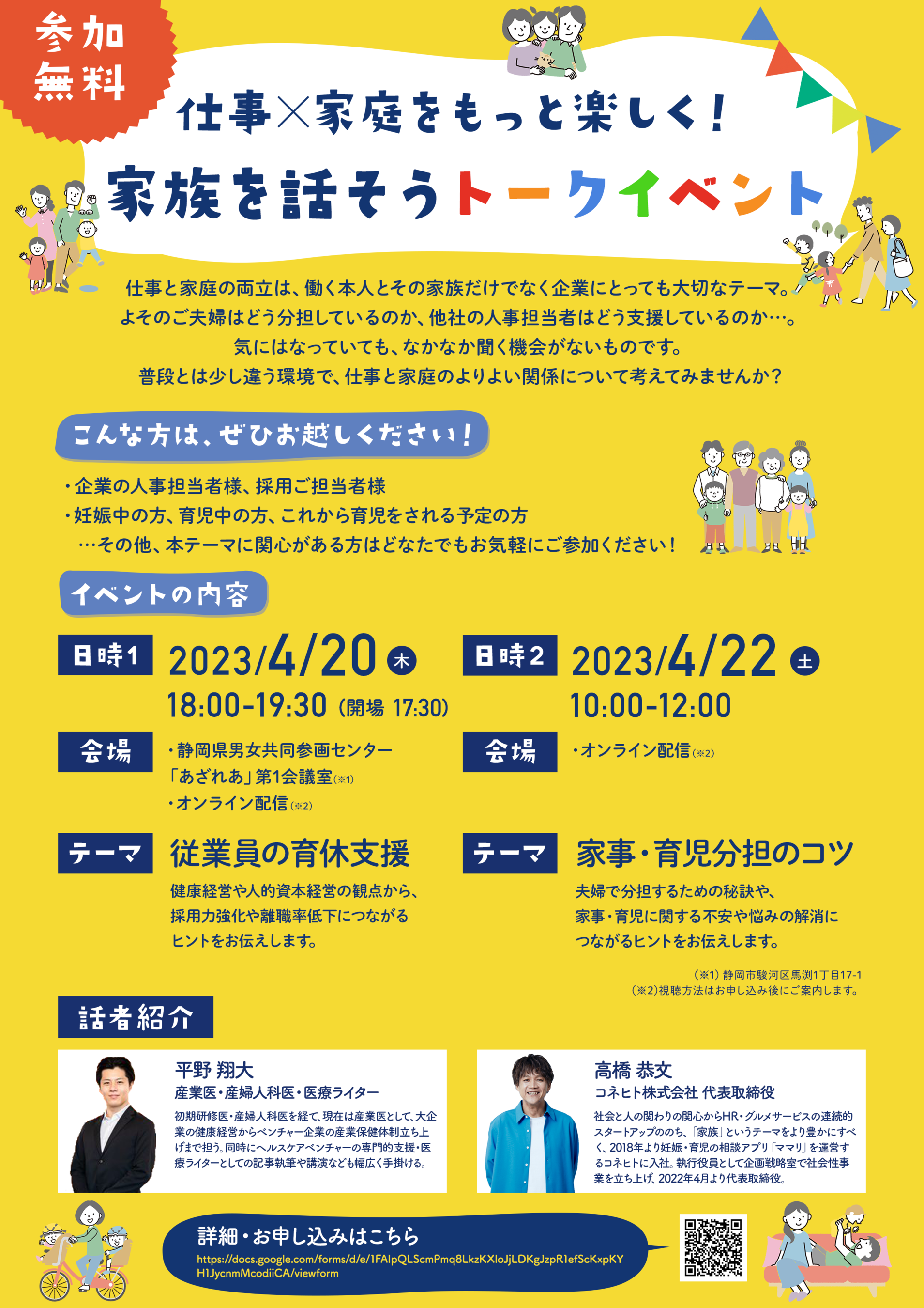 【4/20(木)22(土)無料セミナー】「仕事と家庭の両立」をテーマに静岡市内&オンライン開催