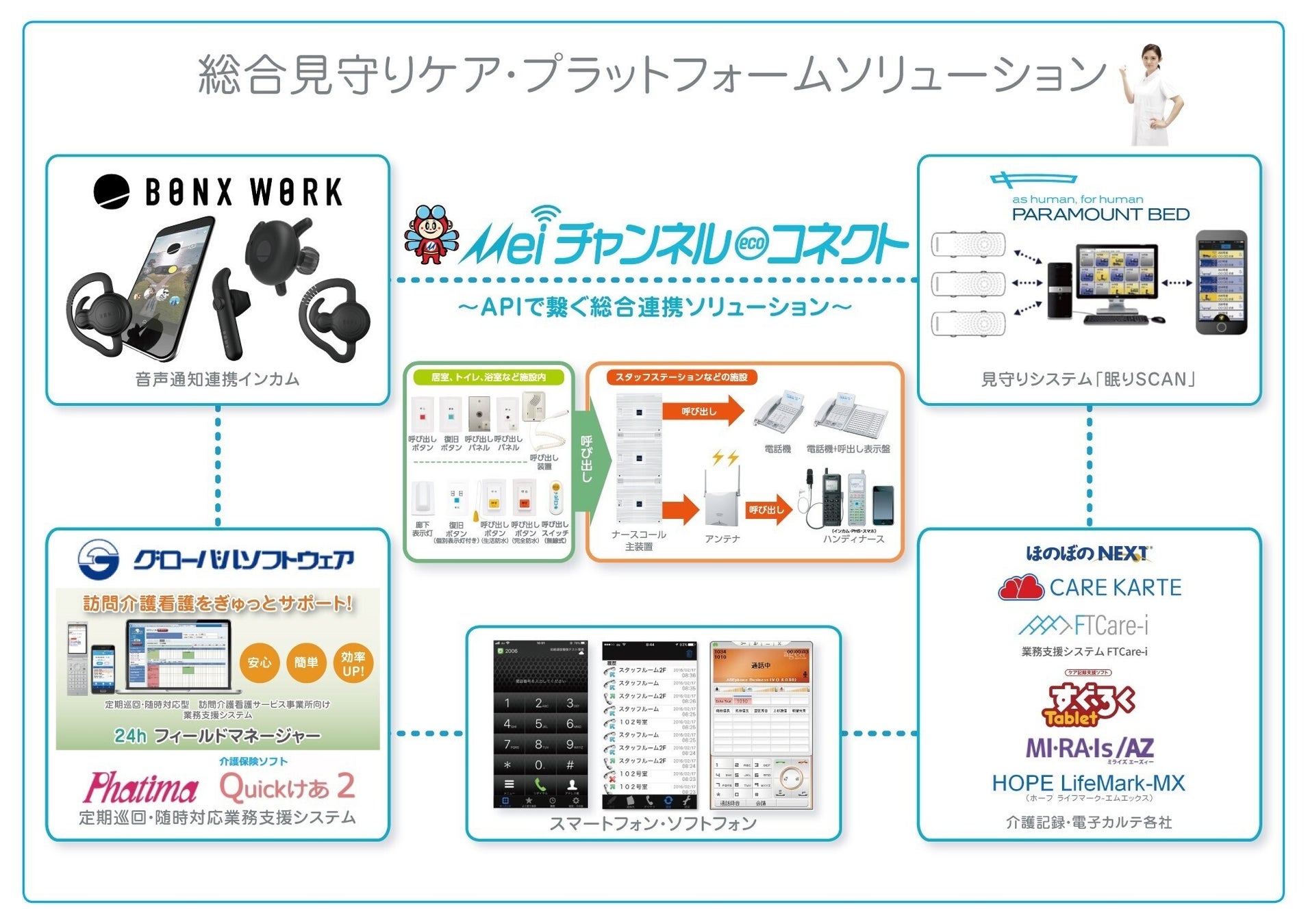 ICT・IOTの時代を見据えたナースコール・インカム・見守りシステム連携させる総合見守りケアプラットフォーム「Mei(メイ)チャンネル・コネクト」を同日に発売します。