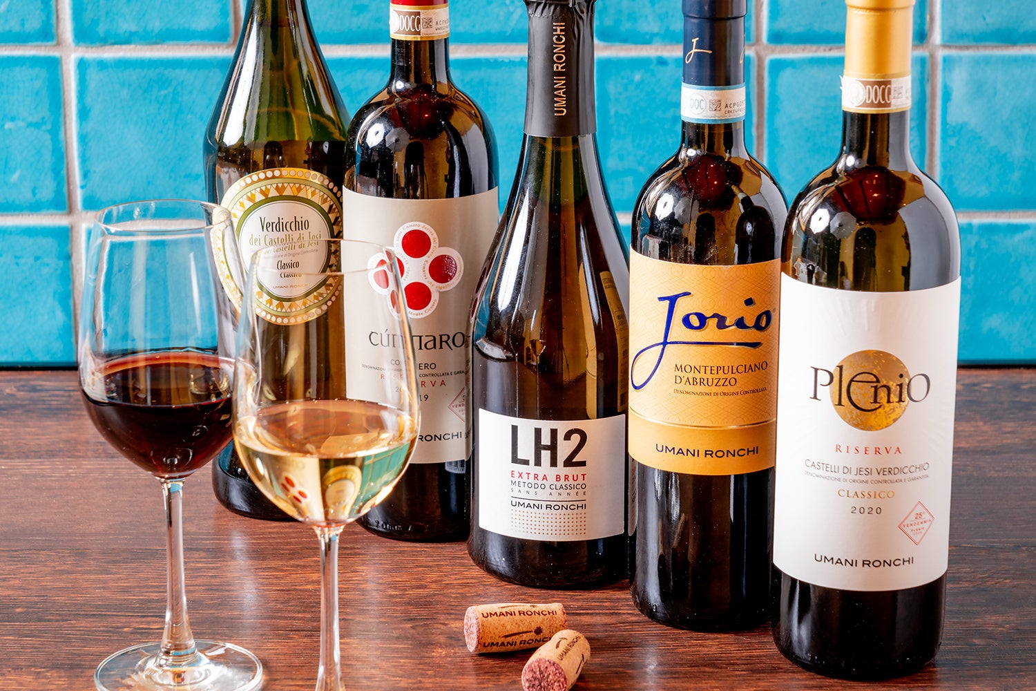『ウマニ・ロンキ』はイタリア中部の東海岸、美しい自然に恵まれたマルケ州のワイナリー。設立は1955年。いち早く近代的な畑の管理法やブドウ栽培法、新しいワイン醸造法を取り入れました。近年ではガンベロロッソ誌を始め、国際的にも評価の高いワイン醸造家、ジュゼッペ・カヴィオラ(Giuseppe Caviola)氏をコンサルタントに迎え、バリック熟成を取り入れた"レ・ブスケ"や"クマロ"、また「スーパー・マルケ」と言われる"ペラゴ"など、優れたワインを生み出しています。マルケ州のリーダー的な存在であるとともに、そのコストパフォーマンスのよさで知られる同社のワインには、気軽にワインを楽しんでほしいという熱い思いが込められています。