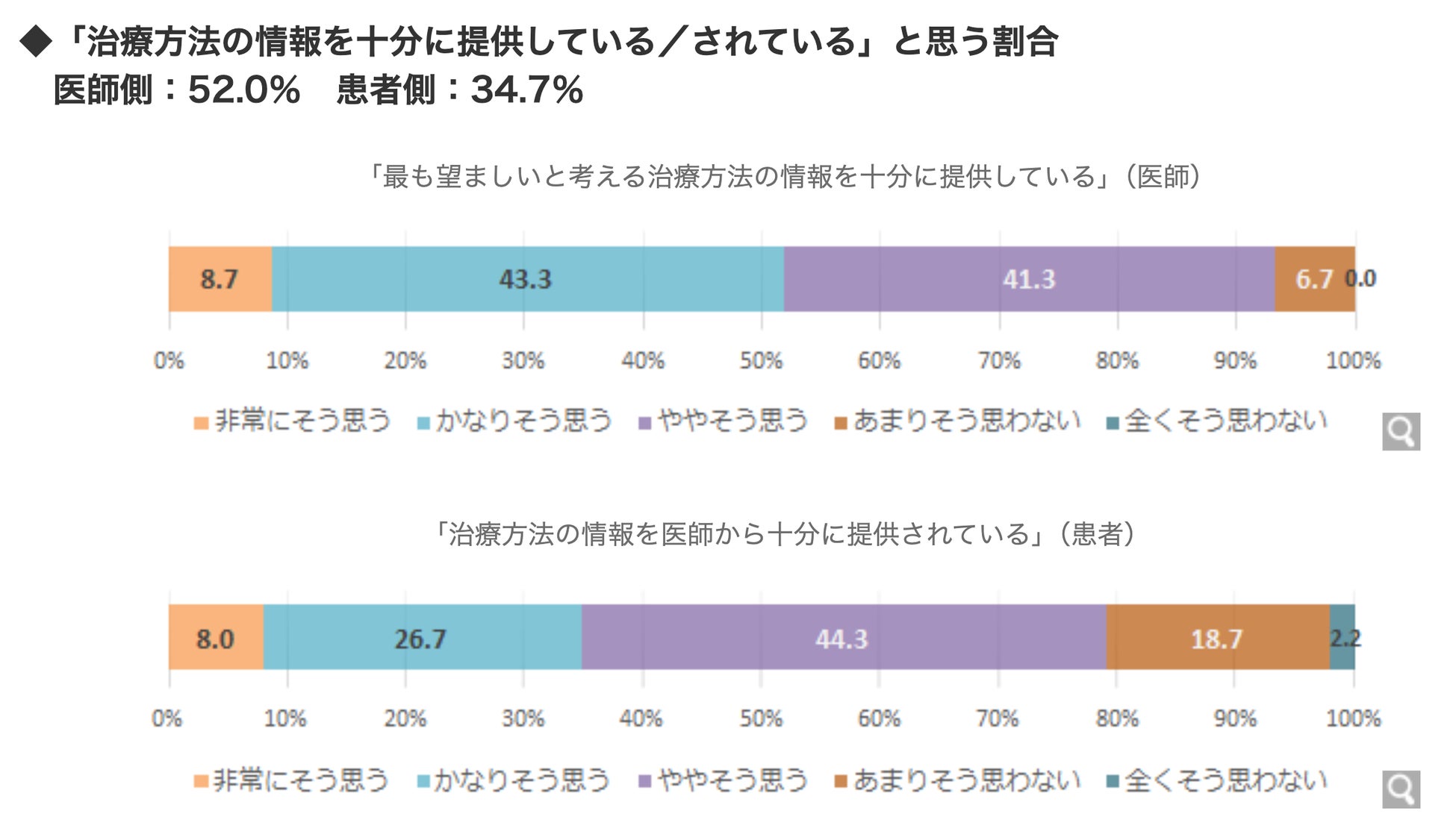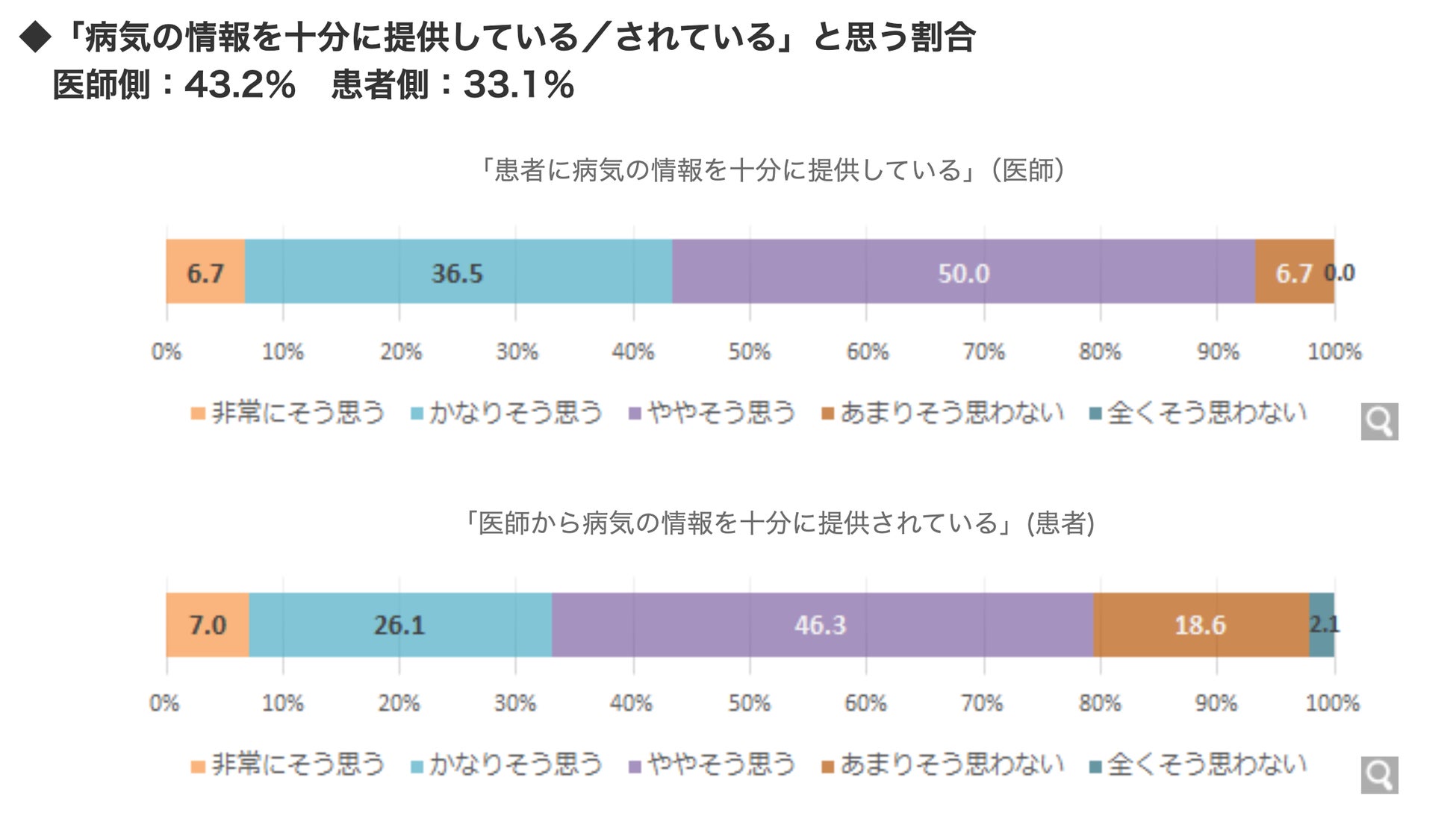 NTTコム オンライン・マーケティング・ソリューション株式会社と京都大学大学院が行った調査によると、医師が患者へ伝える病気や治療方法などの説明について、医師の約5割が「病気や治療の情報をしっかりと提供している」と回答している一方で、患者側は「約7割が情報をしっかりと提供されていない」と回答していることが分かりました。
