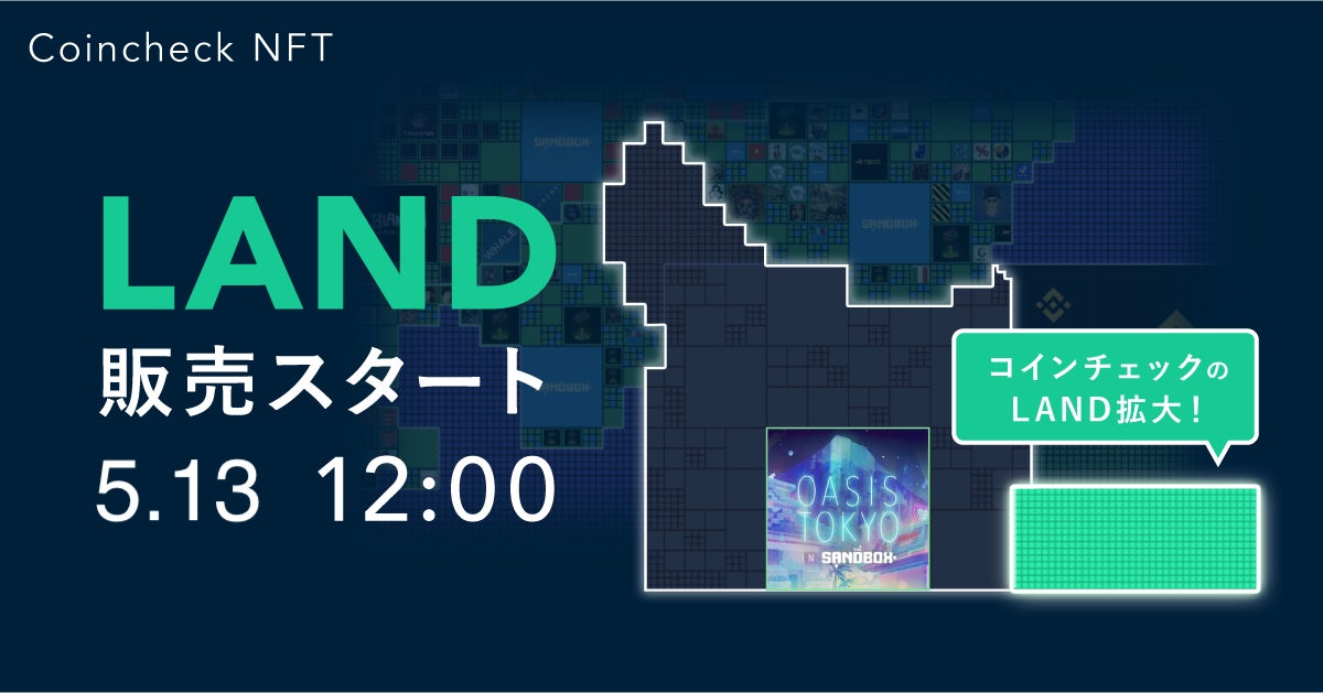 コインチェック株式会社(以下、コインチェック)が提供するNFTマーケットプレイス「Coincheck NFT(β版)」では、ブロックチェーンゲーム『The Sandbox』のメタバース上で当社が保有している土地「LAND(NFT)」、540個を2022年5月13日より販売いたします。今回発売する「LAND(NFT)」は、現在コインチェックが建設中の「Oasis TOKYO」近隣の土地となります。