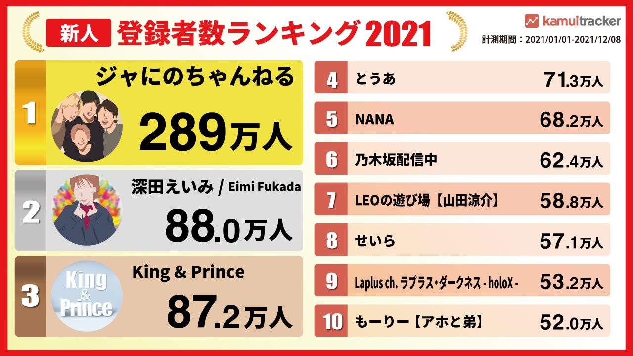 2021年新人YouTuberランキングは芸能人チャンネルと切り抜きチャンネルの伸びが顕著 ― kamui tracker調べ