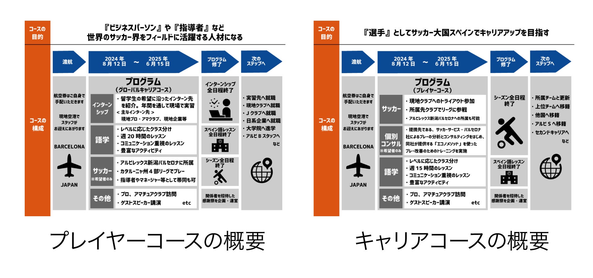 ①ビジネスパーソン、指導者、マネージャーなど、サッカー業界をはじめとする世界で活躍する人材育成を目的とした『グローバルキャリアコース』