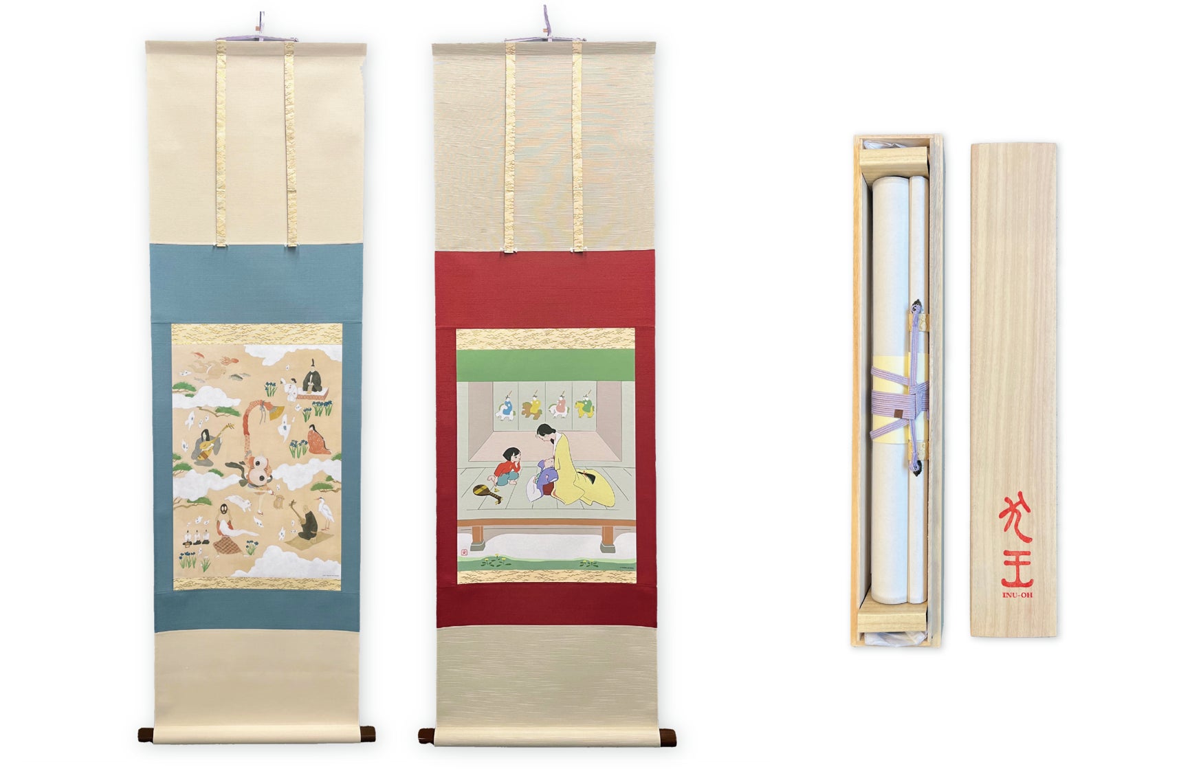 品質にこだわった掛け軸は、国家検定一級表装技能士を含む職人の手によって一つ一つ手作業で製作。イラストは、美術品や仏画の複製画製作と同等の品質で印刷されます。機会を逃すと手に入れることができない、完全受注生産制です。