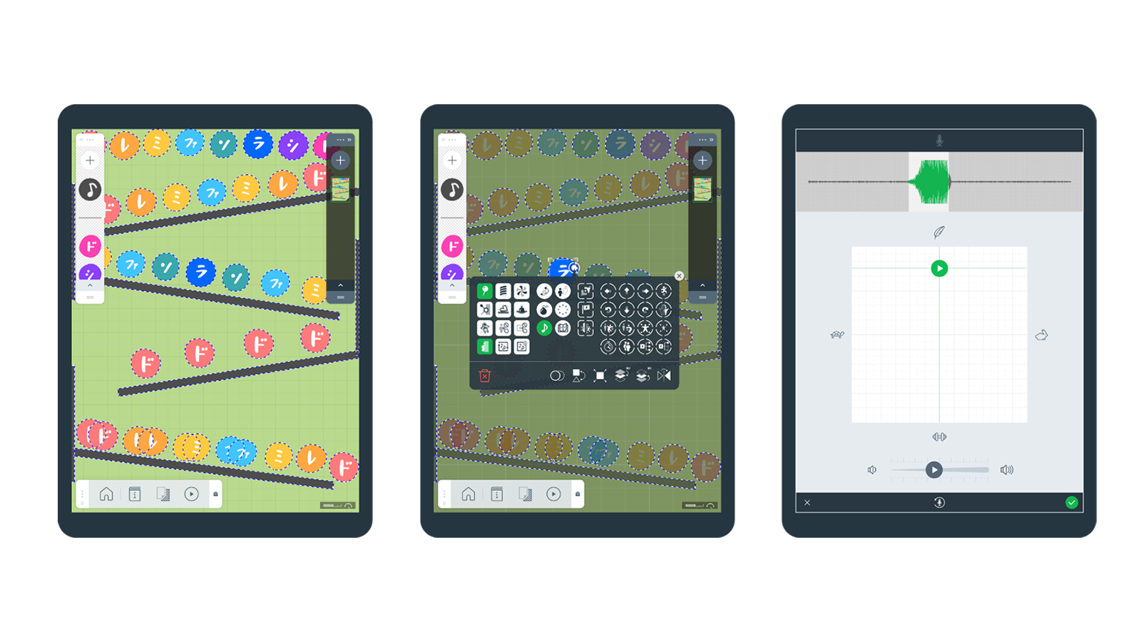 また、文字を使わずに誰でも簡単にデジタル作品がつくれる創造的プログラミングアプリ「スプリンギン」では、声や音を吹き込むだけで楽曲を作ったり、絵本を作ったりすることが可能となっており、作り手の「作りたい!」という気持ちをそのまま表現できるアプリとして、プログラミングを当たり前に学ぶ時代において、自治体や学校、塾・教室などから注目されています。