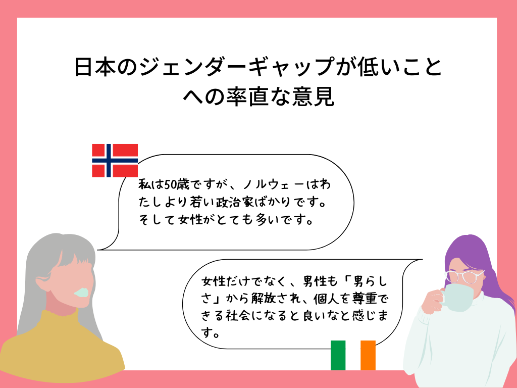 - 日本のジェンダーギャップが低いことへの率直な意見