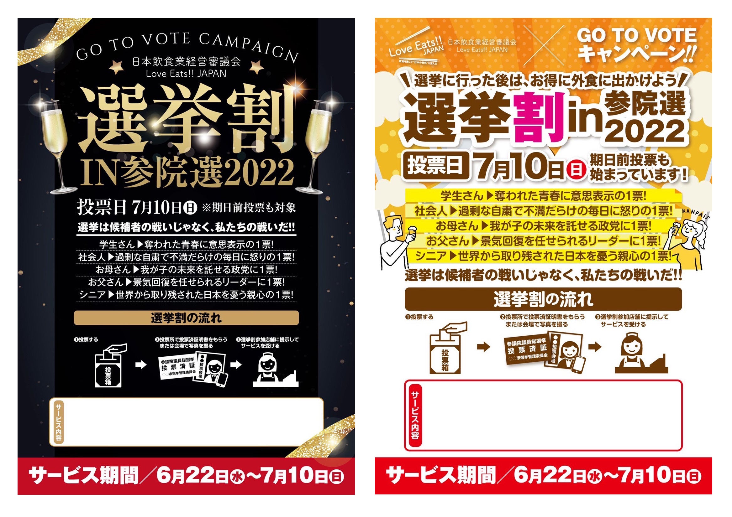 2022/6/27「武相飲食業経営審議会」設立。町田・相模原エリアの飲食店約60店舗が団結し「飲食GO TO VOTEキャンペーン」を開始。選挙割キャンペーンでみんなで投票へ!