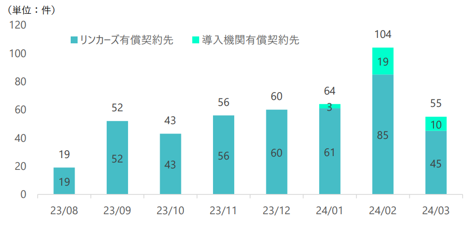 その結果、 2023 年 8 月以降、リンカーズとの有償契約先との商談を中心に、451 件の商談が創出(*3)されています。更には、導入機関同士の広域連携でも、直近 3 ヶ月で商談数 32 件が創出されるなど、地元企業の域外の商談機会の増加、収益機会の拡大に繋がっております。