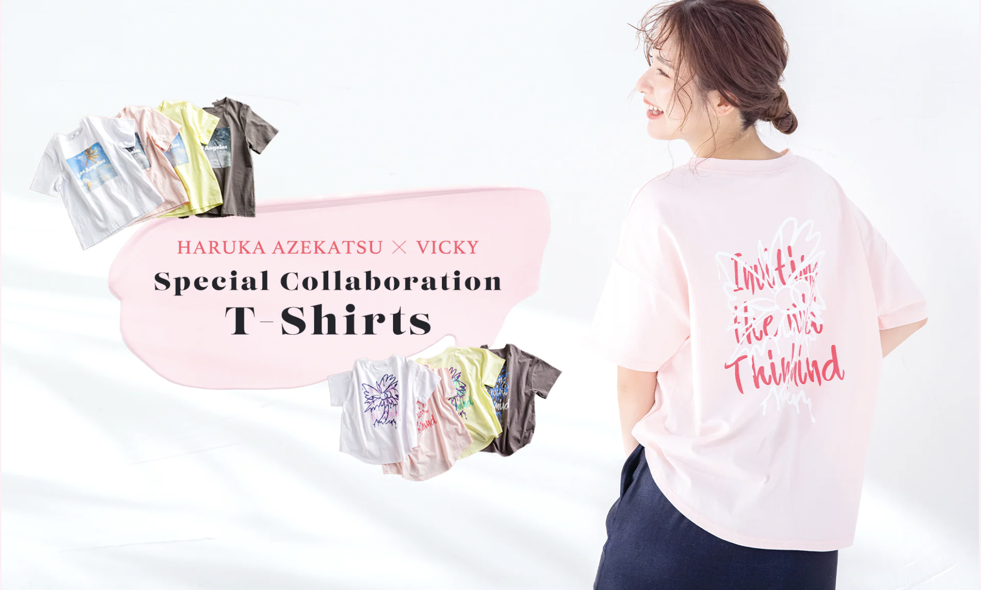 【VICKY(ビッキー)】モデルの畔勝 遥(あぜかつ はるか)との初コラボレーションアイテムを発売! 夏に大活躍しそうなプリントTシャツ2型が登場!