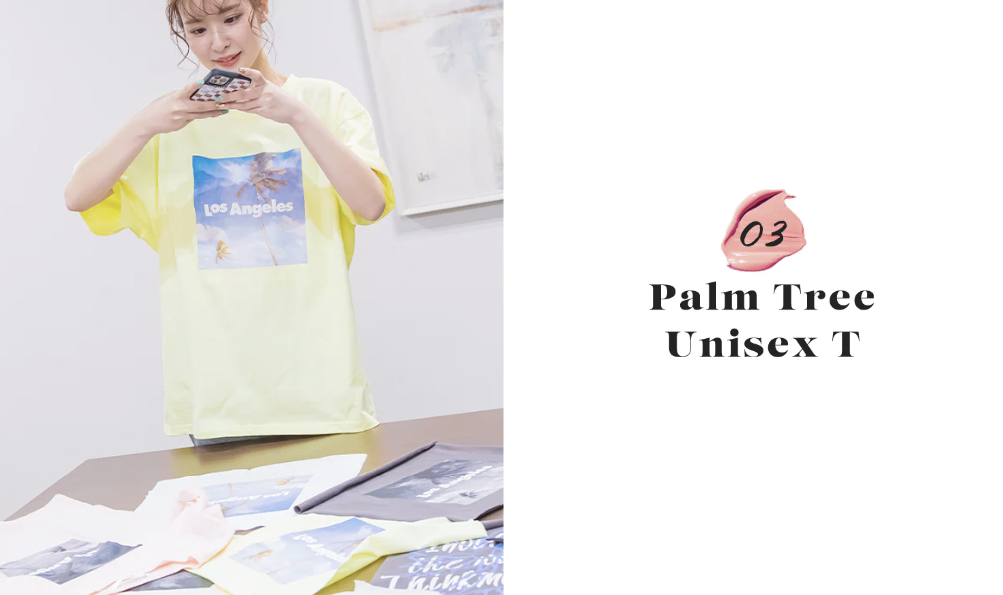 シックな大人っぽさが魅力のヤシの木フォトT。スッキリとしたIラインシルエットがスラッと見えし、コーディネイトに取り入れやすいのも魅力あぜかつアイテムPOINT。手持ちのデニムに合わせやすい色合いにこだわり、