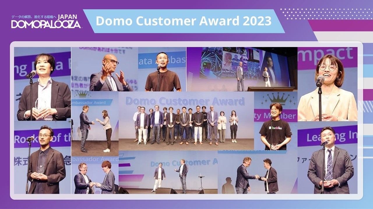 クラウド型データ活用プラットフォーム「Domo」を提供するドーモ株式会社(本社:東京都渋谷区、プレジデント ジャパンカントリーマネージャー:川崎友和、以下ドーモ)は、9月21日(木)・ 9月22日(金)の2日間にわたり年次カンファレンス 「Domopalooza Japan 2023」(ドーモパルーザ・ジャパン)を開催し、「Domopalooza Japan カスタマーアワード」を発表しました。Domoを活用して全社的なデータ活用やビジネス変革を推進し、イノベーションを加速させている企業、および、データ活用を社内の企業文化として根付かせる活動を推進し、ビジネス成果を最大化している個人を表彰しました。