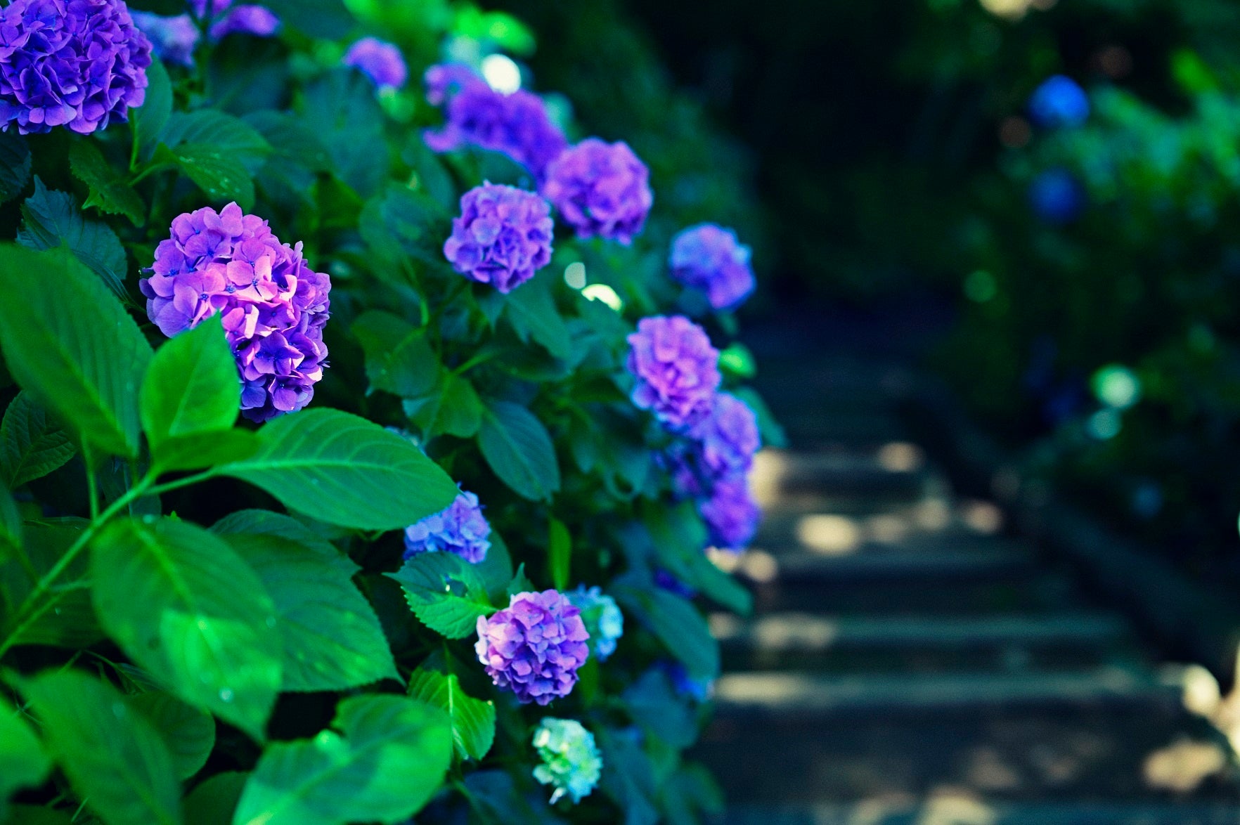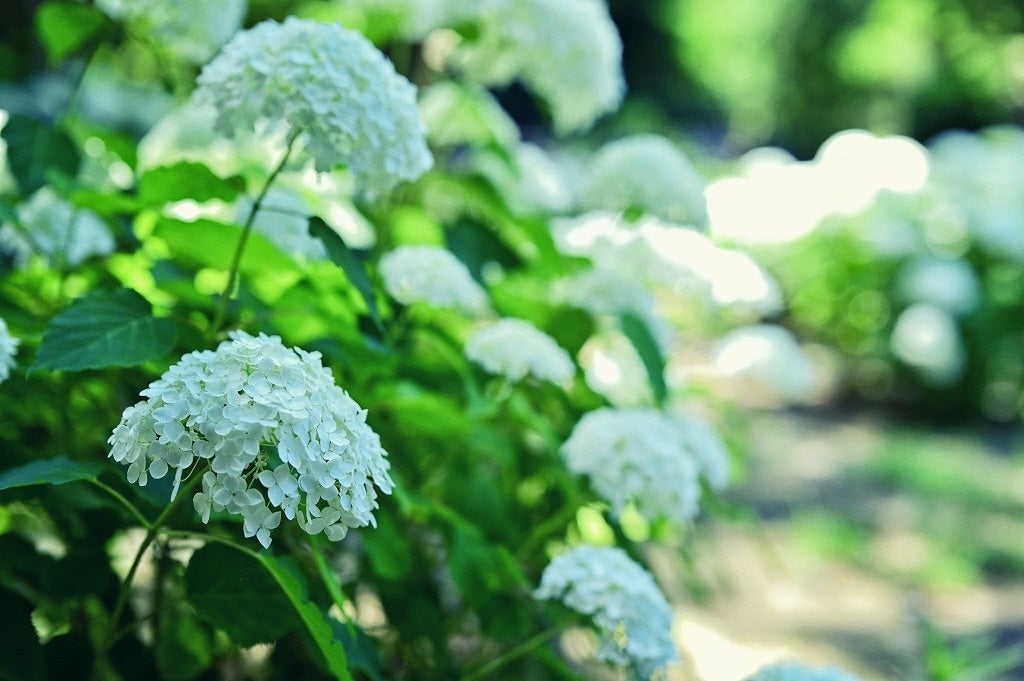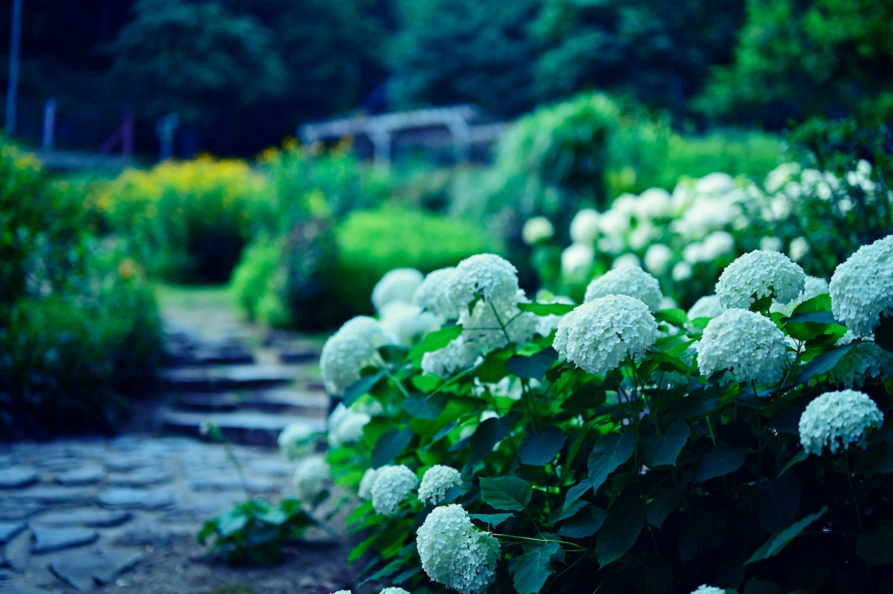 神戸布引ハーブ園の癒しの散歩道。木漏れ日を浴びながら、アジサイ散策をお楽しみください。