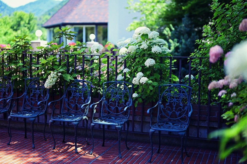 各ハーブガーデンが最盛期を迎えています。中でも時間、日照、天候により様々な美しい表情を魅せる”アジサイ”。晴れた日は鮮やかに、雨の日にはしっとり幻想的に、初夏のガーデンに彩りを添えています。