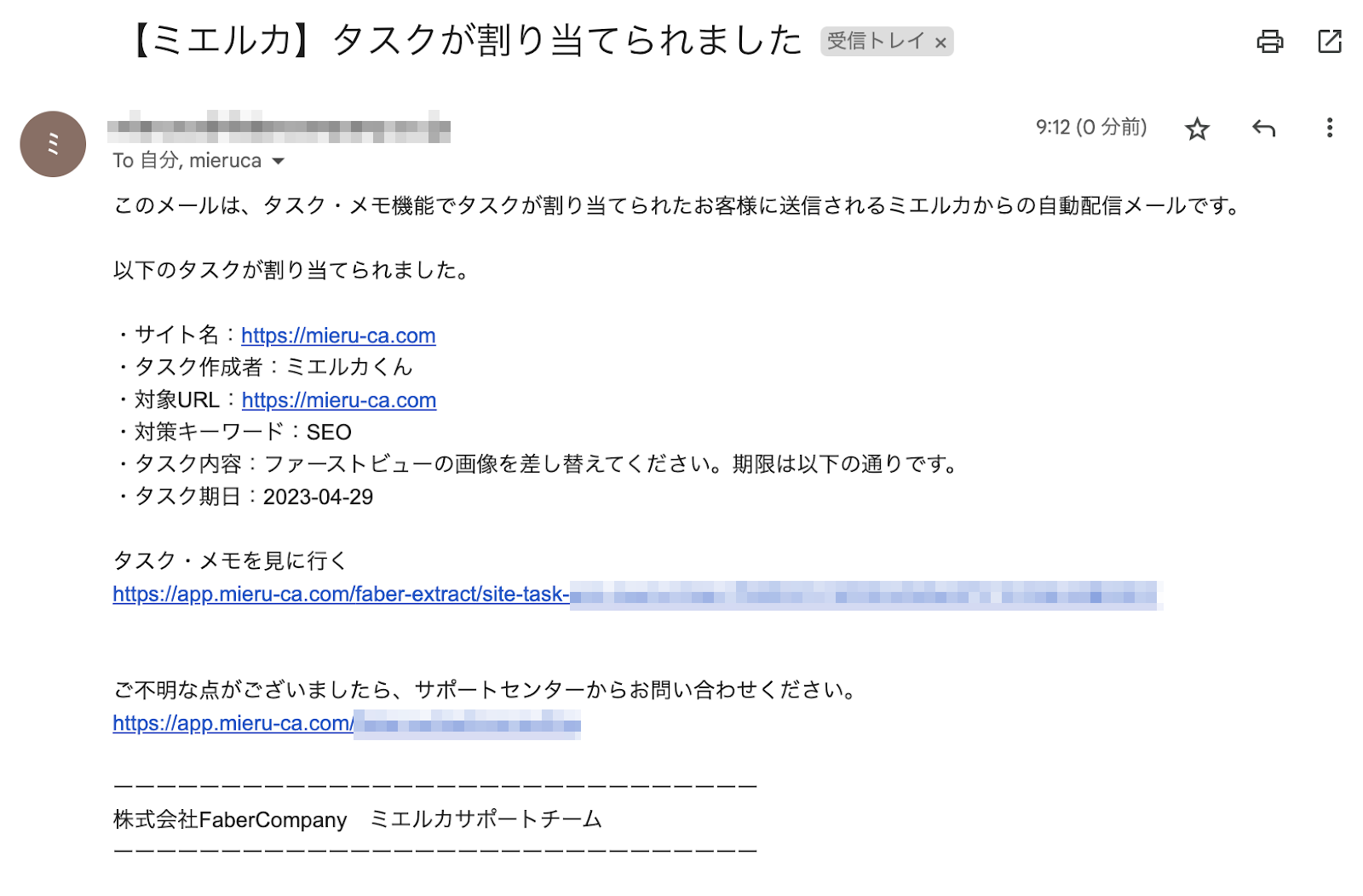 ▲タスクの割り当て通知メール。他にも完了通知メールや期限リマインドメールも届く