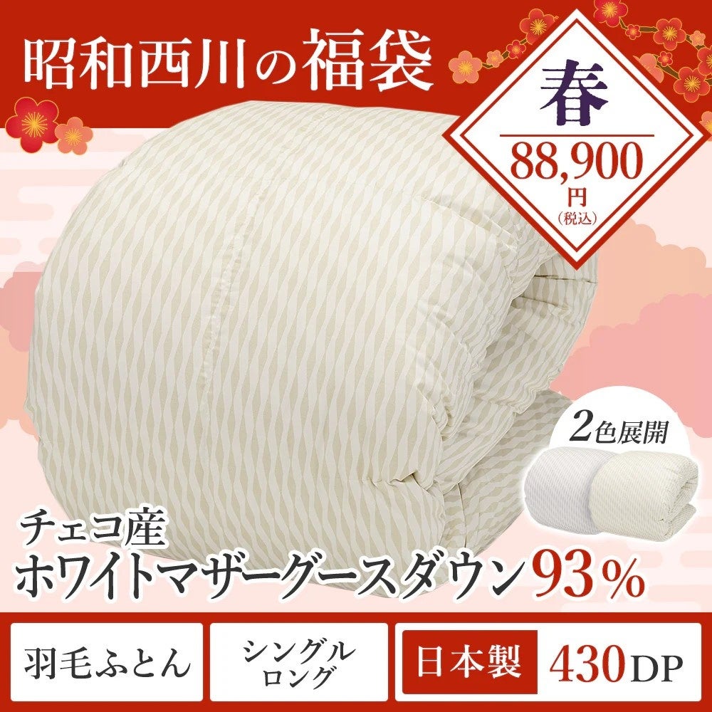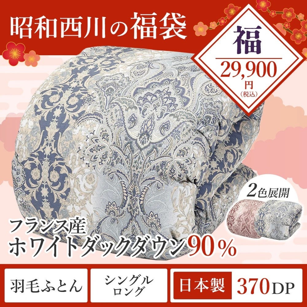 MuAtsu(ムアツ)を中心に様々な寝具を販売している昭和西川株式会社(本社:東京都中央区、代表:西川惠) が運営する公式通販サイト、「西川ストア公式本店」では、羽毛ふとん福袋を始めとした多彩な福袋が登場。