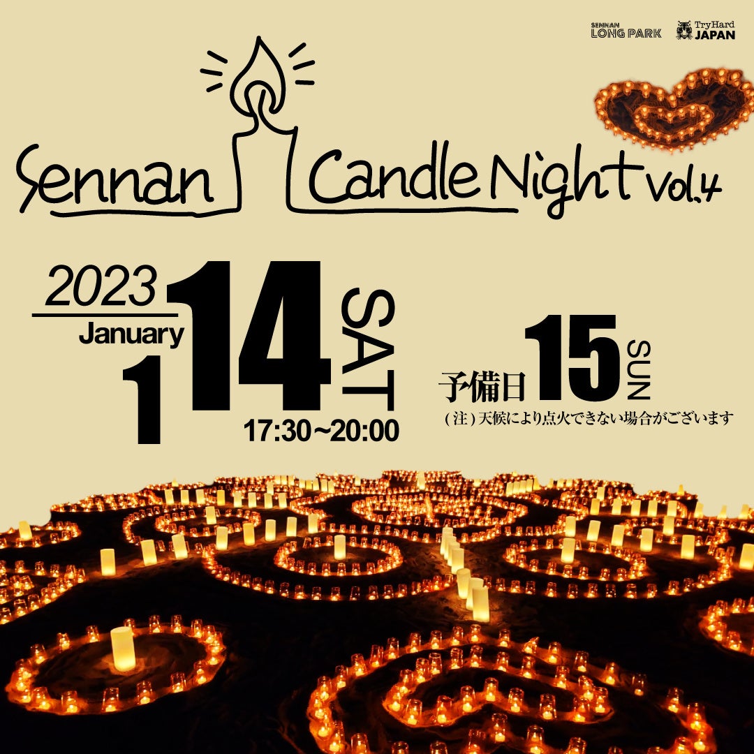 株式会社TryHard Japan(トライハードジャパン)は、2023年1月21日(土)にSENNAN LONG PARK内にて、「SENNAN CANDLE NIGHT」を開催いたします。