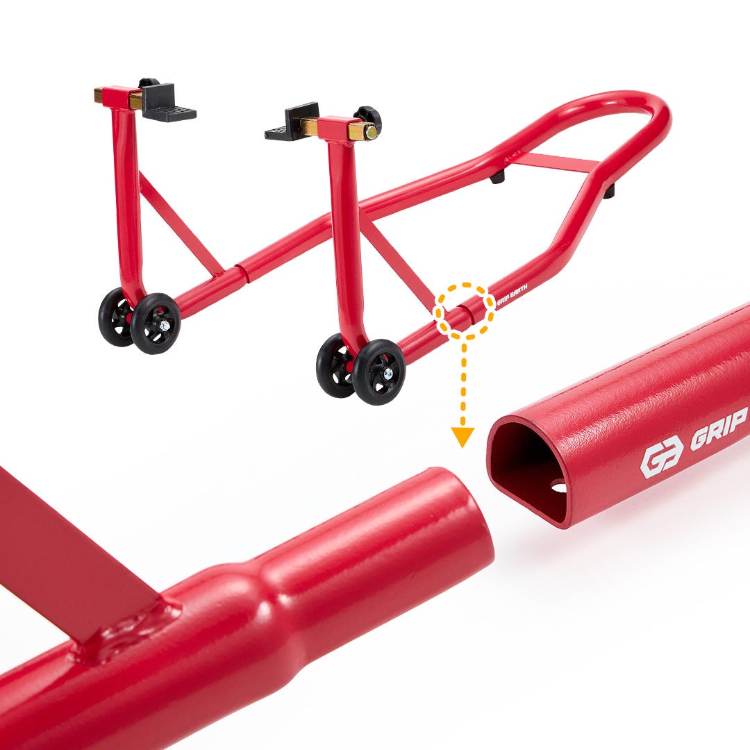 当商品は幅240mm~350mmのスイングアームに対応。耐荷重200kgのため、中型~大型バイクまで幅広い種類の車体で使用が可能です。さらに、パイプの接続部にガタツキが生じない設計のため、操作性・安定性に優れています。