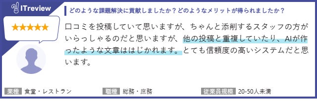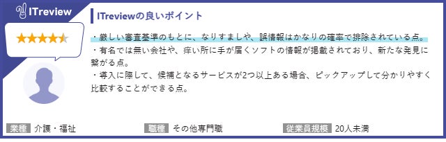 また、レビュー審査についてもお声をいただいておりますので、ITreviewに投稿いただいたレビューから抜粋していくつかご紹介します。