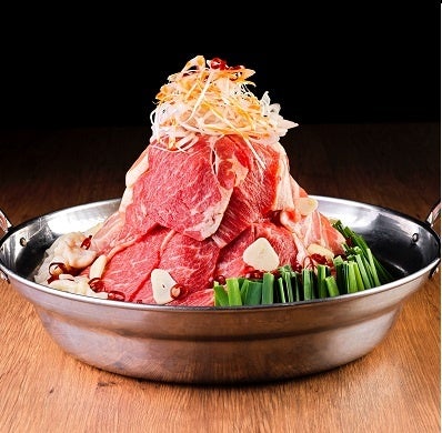 牛・豚・鶏・ホルモンと様々なお肉とたっぷりの野菜で山型にし、赤身の美しい牛肉でコーティングしたビジュアルにもインパクト大の「肉鍋」。パーティーを盛り上げること、間違いありません。にんにくを焦がしたスープが食欲をそそる、当店一押しのトレンド鍋です。