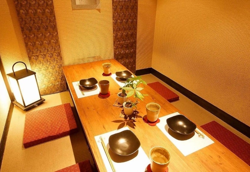 和を基調とした雰囲気漂う落ち着いた個室。厚みのあるモダンなデザイン襖で仕切った完全プライベートな空間をご提供いたします。飲み会や女子会、デートなど様々なシチュエーションでご利用していただけます。掘りごたつのプライベート空間で、自慢の料理とお酒をゆっくりとお楽しみください。