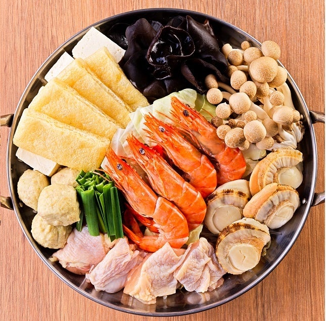 旬の魚介を贅沢に盛り込んだ、贅沢な「海鮮ちゃんこ鍋」。魚介と鶏出汁がMIXしたスープは、コクと旨味をお楽しみいただけます。醤油・味噌・柚子塩の3つのスープからお選びください。