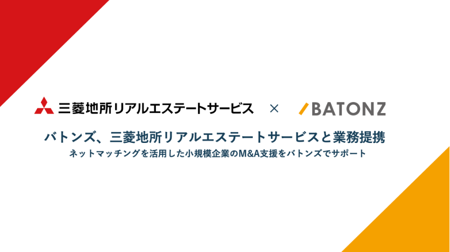 株式会社バトンズ(本社:東京都千代田区、代表取締役:神瀬 悠一、以下バトンズ)は三菱地所リアルエステートサービス株式会社(本社:東京都千代田区、代表取締役:湯浅哲生、以下三菱地所リアル)と小規模企業のM&A支援に向けた業務提携契約を締結することをお知らせします。
