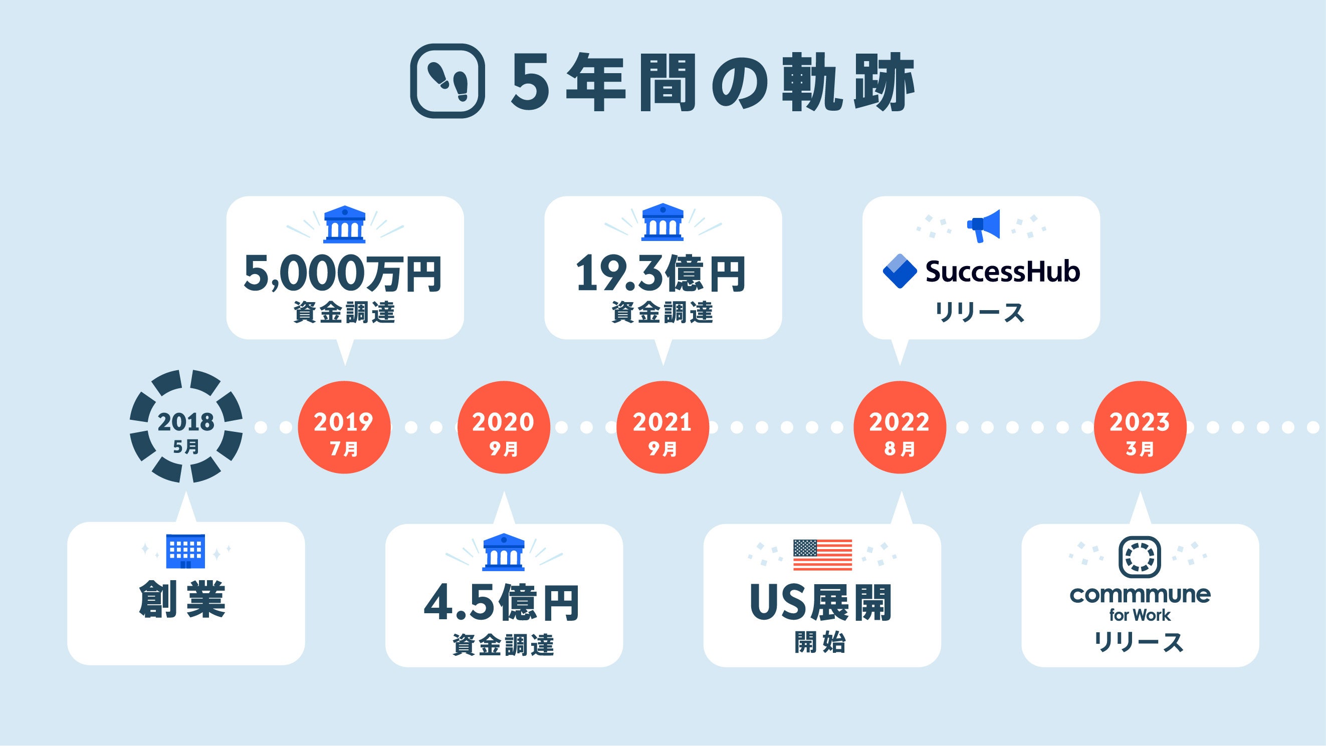 コミューンは、2018年5月の創業から5周年を迎えました。5周年を記念して事業の成長をインフォグラフィックというかたちで振り返り、導入企業規模の割合やコミュニティの成果など、これまで公開してこなかった数字を新たに公開しています。ぜひ最後までご覧いただけますと幸いです。