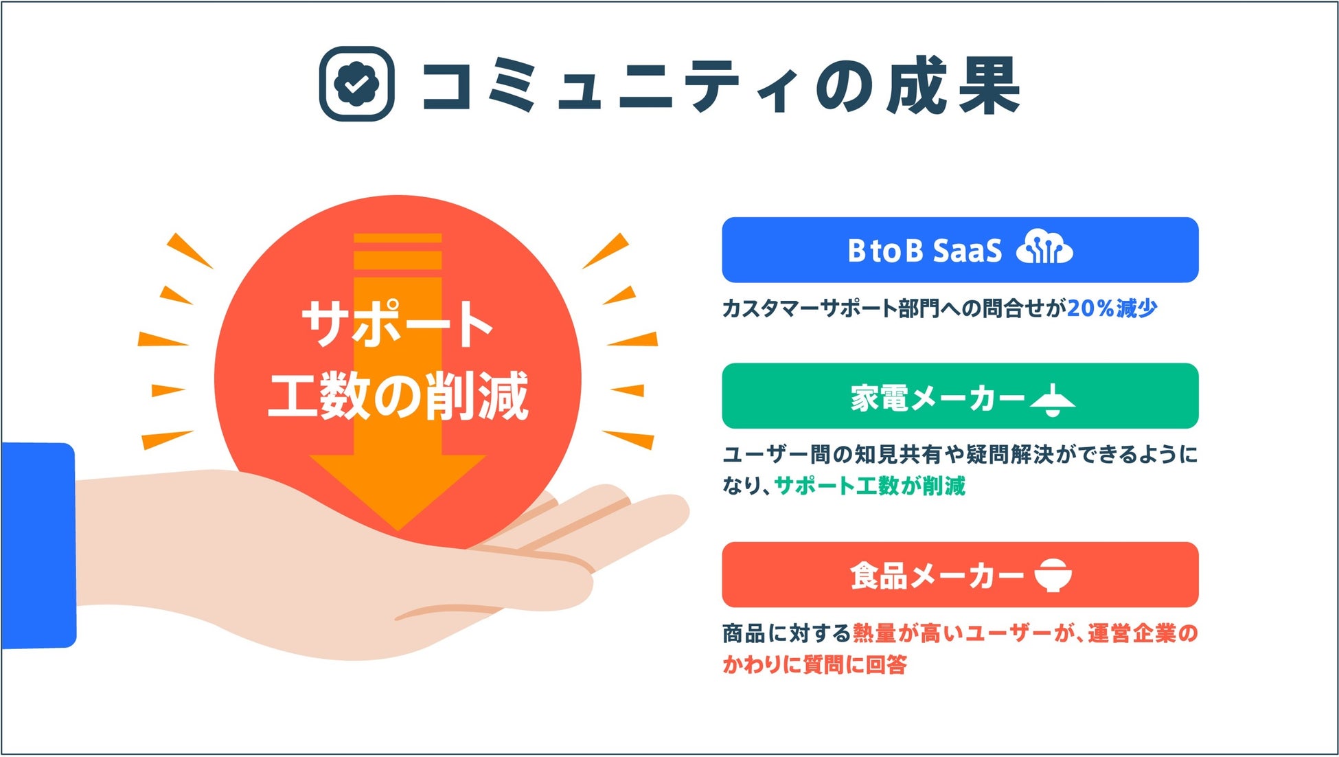 コミューンが提供するコミュニティサクセスプラットフォームです。自社に最適なコミュニティをノーコードで簡単に構築・運用でき、顧客・ユーザーコミュニケーションのワンストップ化が可能です。コミュニティを通して、課題解決・利用度向上・ファン増加を促し、企業の継続的な売上向上を実現します。