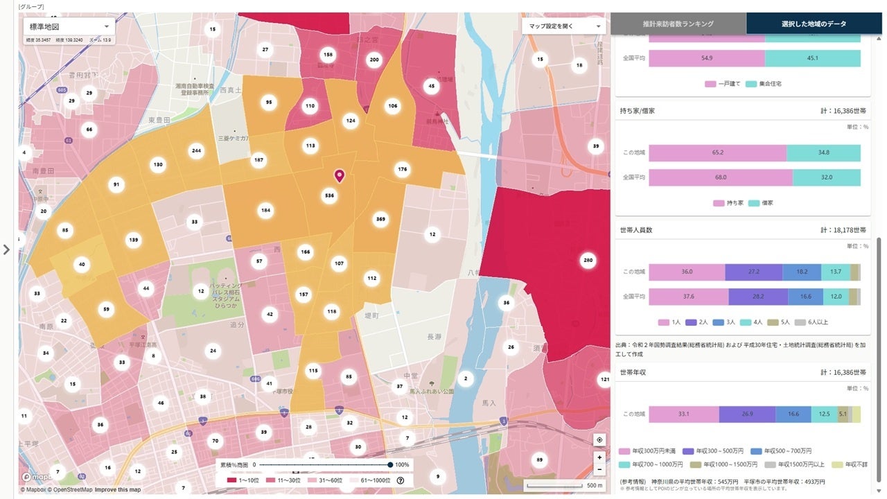 これにより、「顧客属性と来訪傾向の相関や変化の算出」や「商圏の変化予測や新たなターゲット候補の抽出」など、より高度な分析を実現することができます。