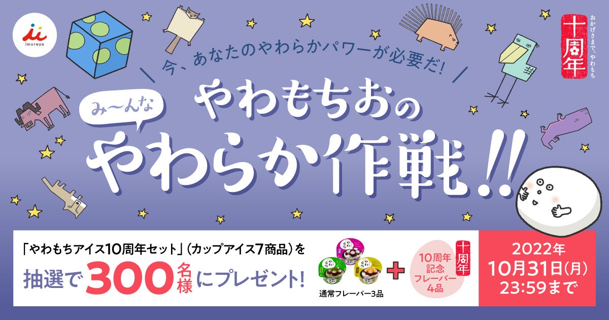 やわもちアイス10周年記念オープンキャンペーン「やわもちおの、み~んなやわらか作戦!!」のご案内