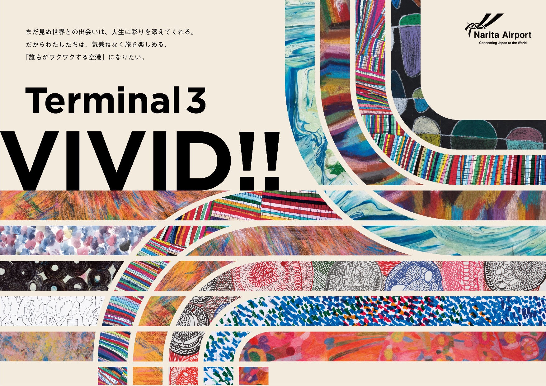 本プロジェクトは「Make Terminal3 Vivid」をテーマとし、ご利用いただくお客様の思い出をイキイキと鮮やかに彩りたいとの願いが込められています。“空港”という多様なお客様が利用する場所であることから作家との繋がりを感じてもらえるよう、全国各地に在籍する作家のほか、海外に在住する作家のアート計18作品を選定。新たに旅行者が異彩のアートに出会う機会を創造しています。異彩のアートを身近に感じながら、空港で過ごす時間をお楽しみください。